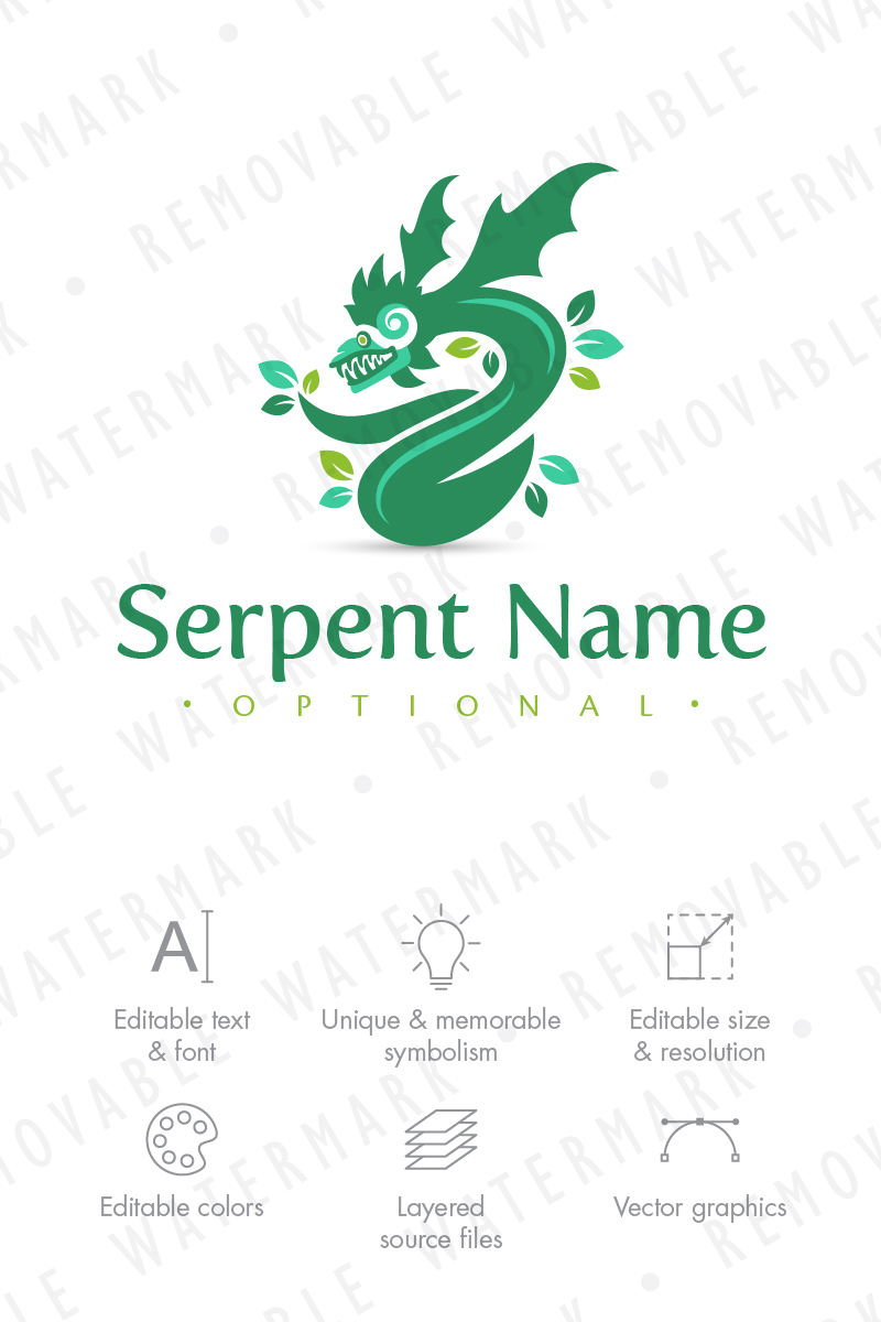 Download Шаблон логотипа "Quetzalcoatl Serpent God Logo Template" / Quetzalcoatl Serpent God Logo Template - Шаблон логотипа на тему графика nature energy earth sky god dragon spirit snake winged fertility serpent aztec mayan quetzalcoatl garden logo design template mythical creature