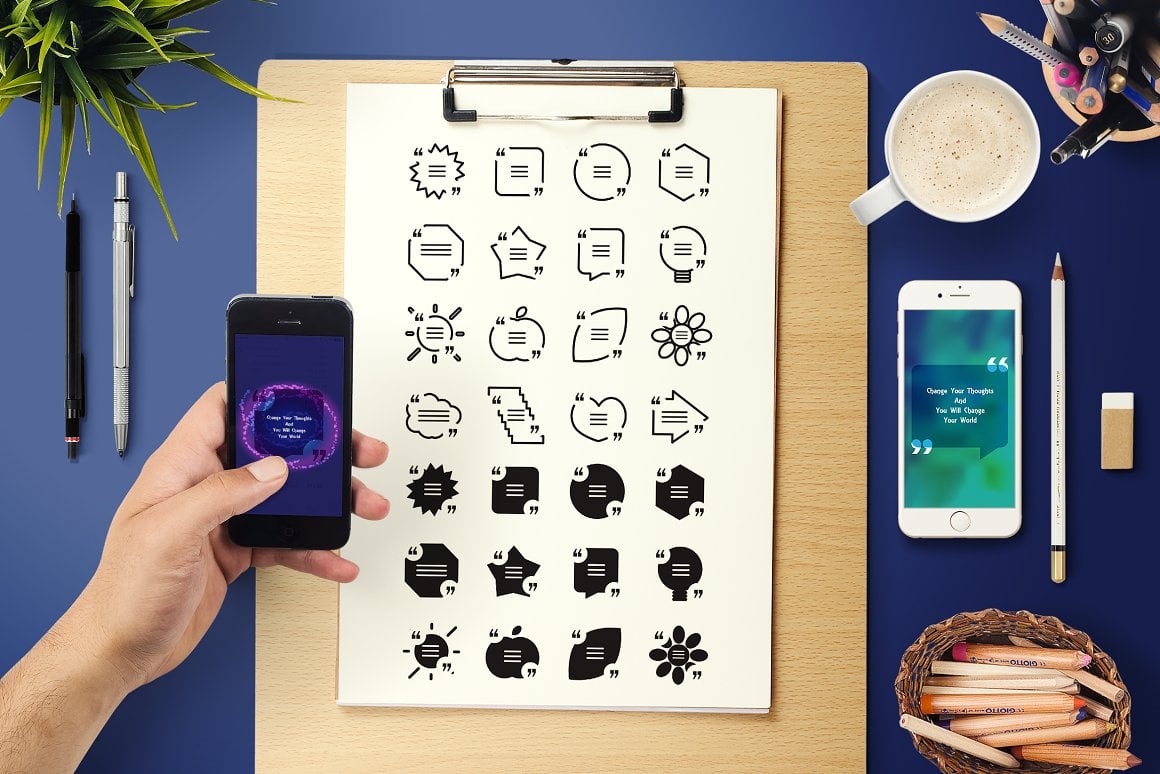 Download Фирменный стиль "Quote Bubble - Corporate Identity Template" / Quote Bubble - Corporate Identity Template - Фирменный стиль на тему графика poster,design,template,quote,heart,arrow,vector,love,text,sun,star,magical,magic,light,bright,decoration,flower,background,apple,banner,note,bubble,frame,box,night,tag,cosmos,chat,message,mot