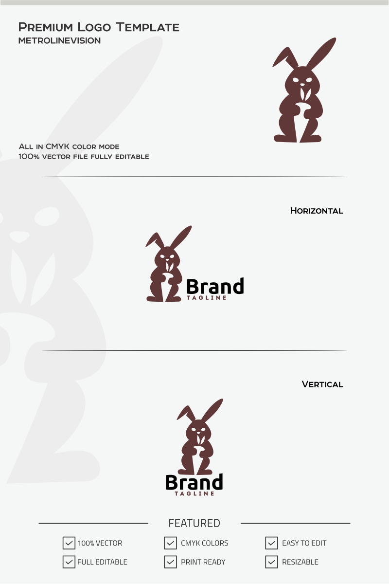 Download Шаблон логотипа "Rabbit Logo Template" / Rabbit Logo Template - Шаблон логотипа на тему графика bunny fluffy kids rabbit toy toys white carrot bad black crazy design grayscale identity logo logotype media print rebel vector