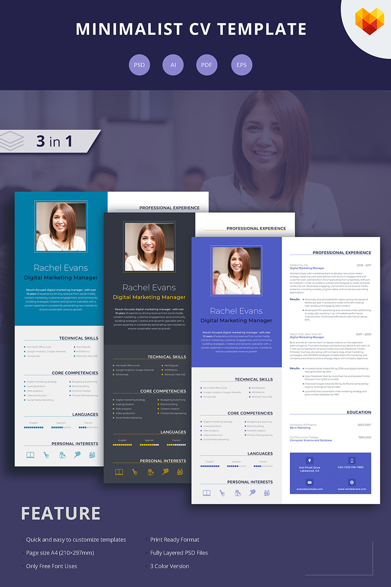 Download Резюме "Пример резюме секретаря" / Rachel Evans - Digital Marketing Manager Resume Template - Резюме на тему графика