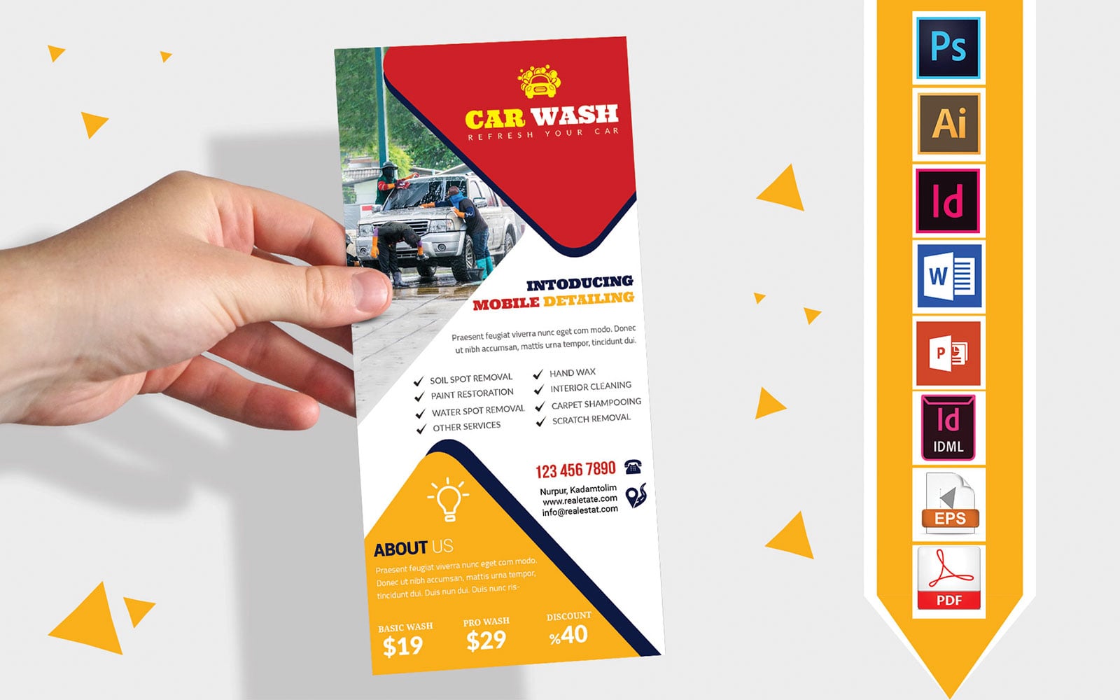 Download Фирменный стиль "Rack Card | Car Washing DL Flyer Vol-10 - Corporate Identity Template" / Rack Card | Car Washing DL Flyer Vol-10 - Corporate Identity Template - Фирменный стиль на тему графика dl,dl flyer,car wash dl flyer,car wash,car washing,flyer,car,car flyer,washing flyer,car wash flyer,car washing flyer,bus flyer,bus washing flyer,rent a car,pickup,cng,auto bike,bike,cycle,mo