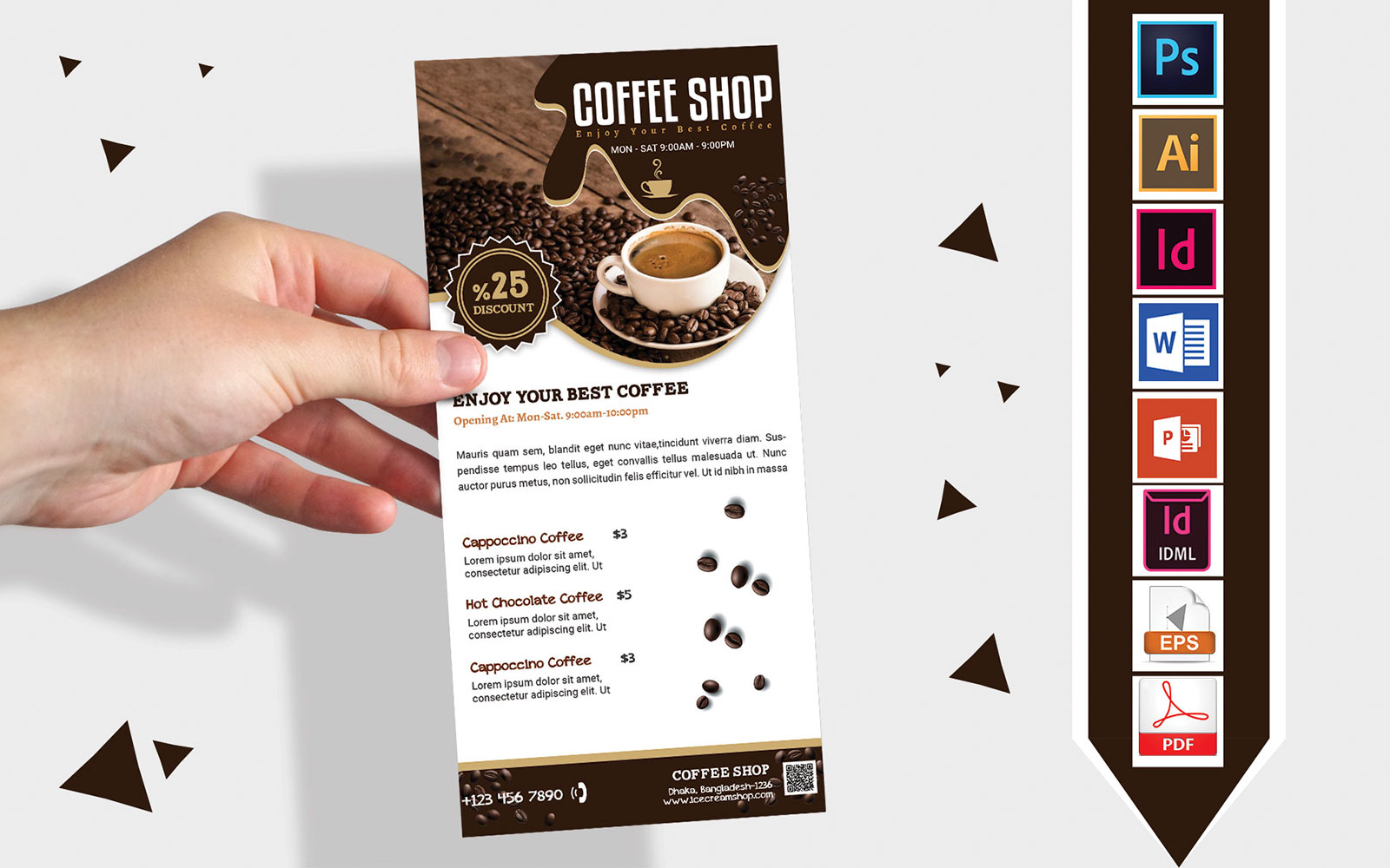 Download Фирменный стиль "Rack Card | Coffee Shop DL Flyer Vol-03 - Corporate Identity Template" / Rack Card | Coffee Shop DL Flyer Vol-03 - Corporate Identity Template - Фирменный стиль на тему графика dl,dl flyer,coffee shop dl flyer,coffee shop,coffee stall,tea shop,tea stall,coffee shop rack card,teal stall dl flyer,flyer,psd,eps,indesign,ms word,ms powerpoint,idml,vector eps,psd flyer,e