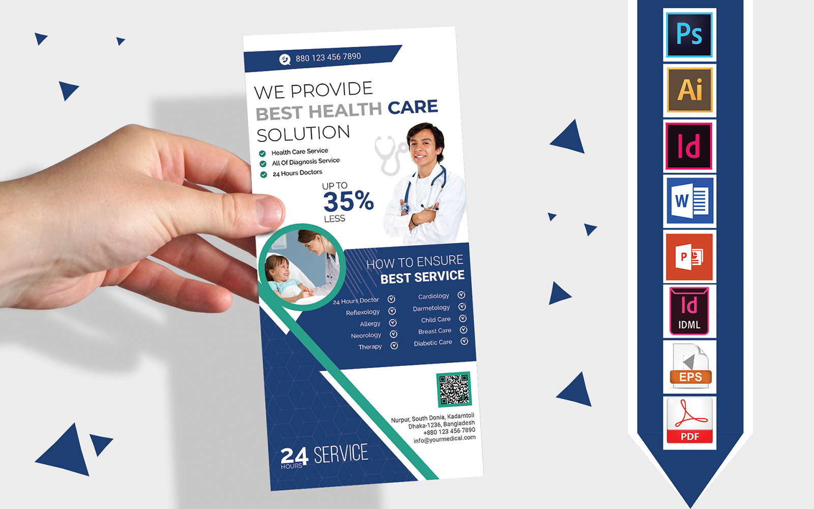 Download Фирменный стиль "Rack Card | Doctor & Medical DL Flyer Vol-02 - Corporate Identity Template" / Rack Card | Doctor & Medical DL Flyer Vol-02 - Corporate Identity Template - Фирменный стиль на тему графика dl,dl flyer,doctor dl flyer,hospital dl flyer,medical dl flyer,doctor,medical,hospital,clinic,health care,child care,mother care,diabetic care,neorology,cardiology,allergy,therapy,doctor flye
