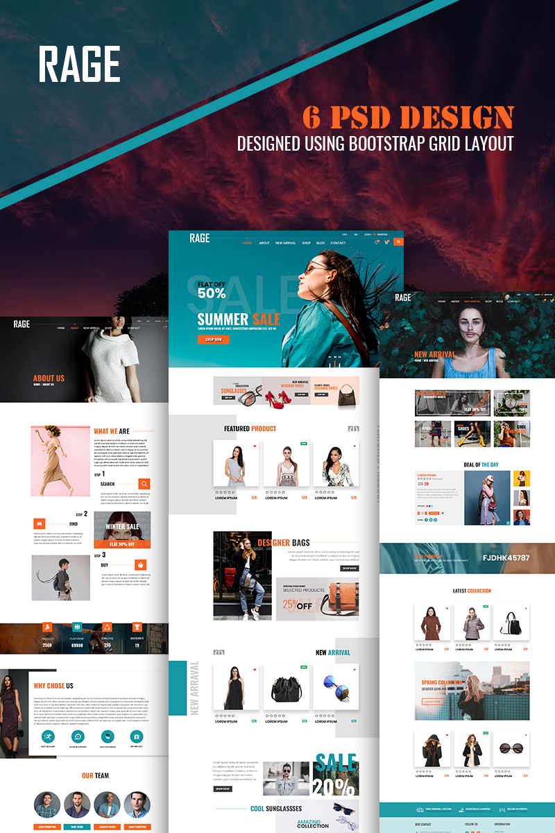 Download PSD шаблон "RAGE - Multipurpose Ecommerce PSD Template" / RAGE - Multipurpose Ecommerce PSD Template - PSD шаблон на тему бизнес и услуги theme template psd photoshop ecommerce