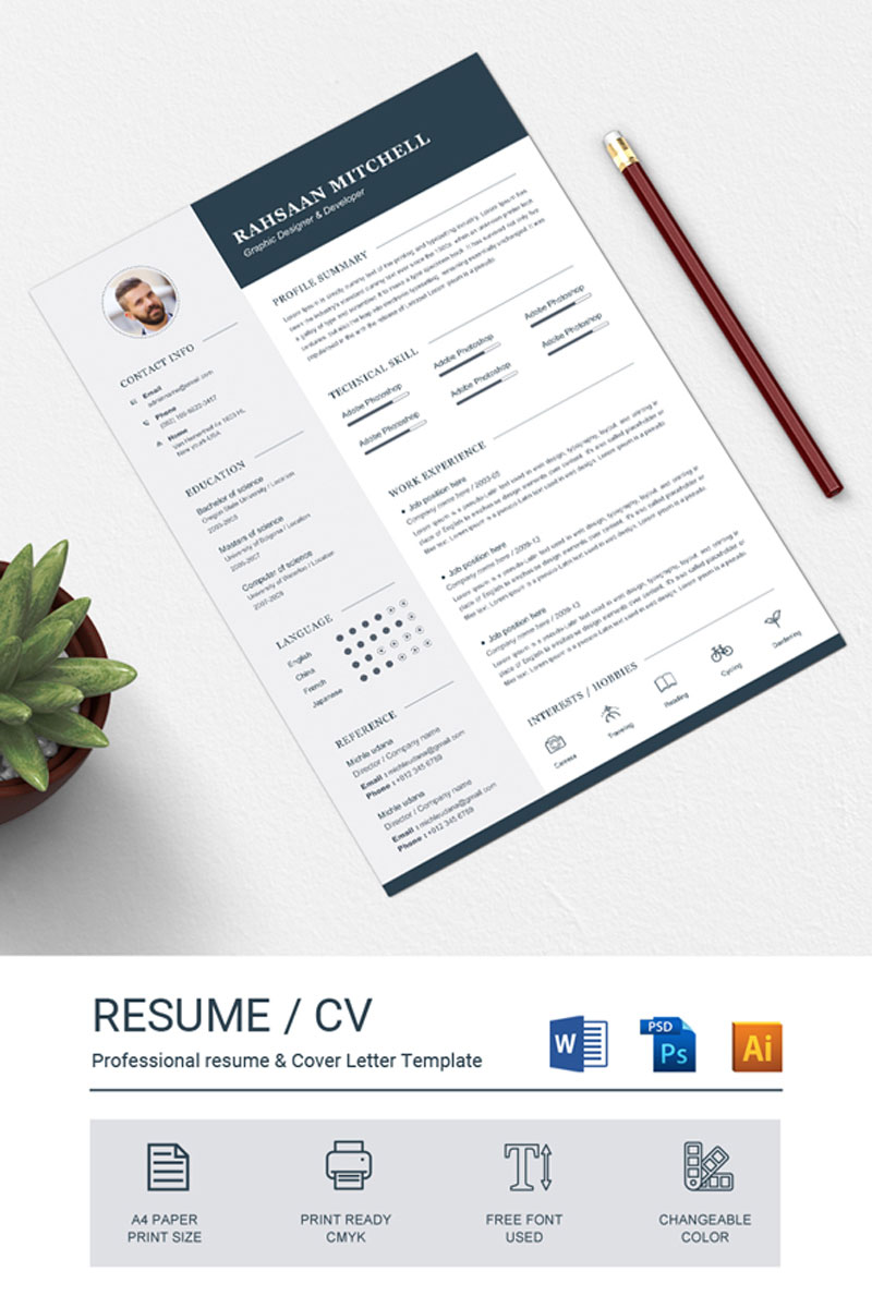 Download Резюме "Rahsaan Mitchell Resume Template" / Rahsaan Mitchell Resume Template - Резюме на тему графика resume template cv clean modern a4 doc elegant indesign infographic professional creative design minimal pages portfolio word us letter