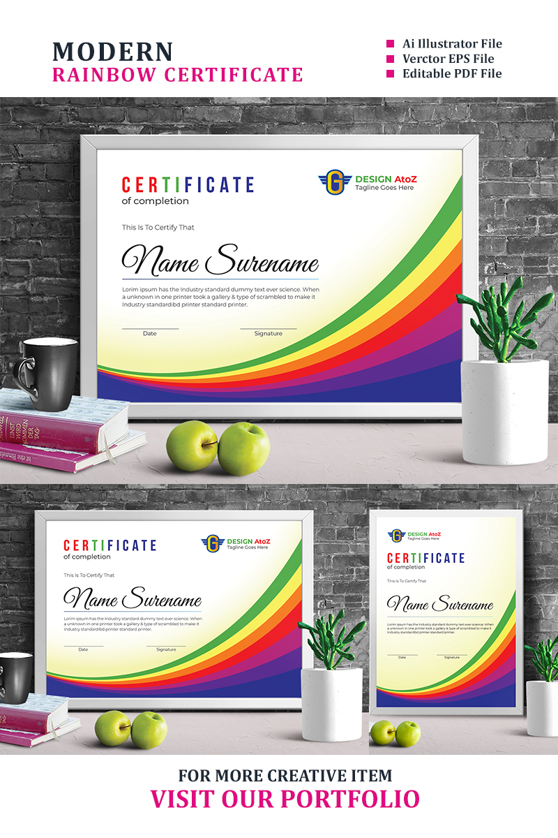 Download Шаблон сертификата "Rainbow Certificate Template" / Rainbow Certificate Template - Шаблон сертификата на тему графика achievement appreciation award diploma completion acknowledgement certificates eyelash nail extension modern luxury rainbow professional training red blue gold green yellow