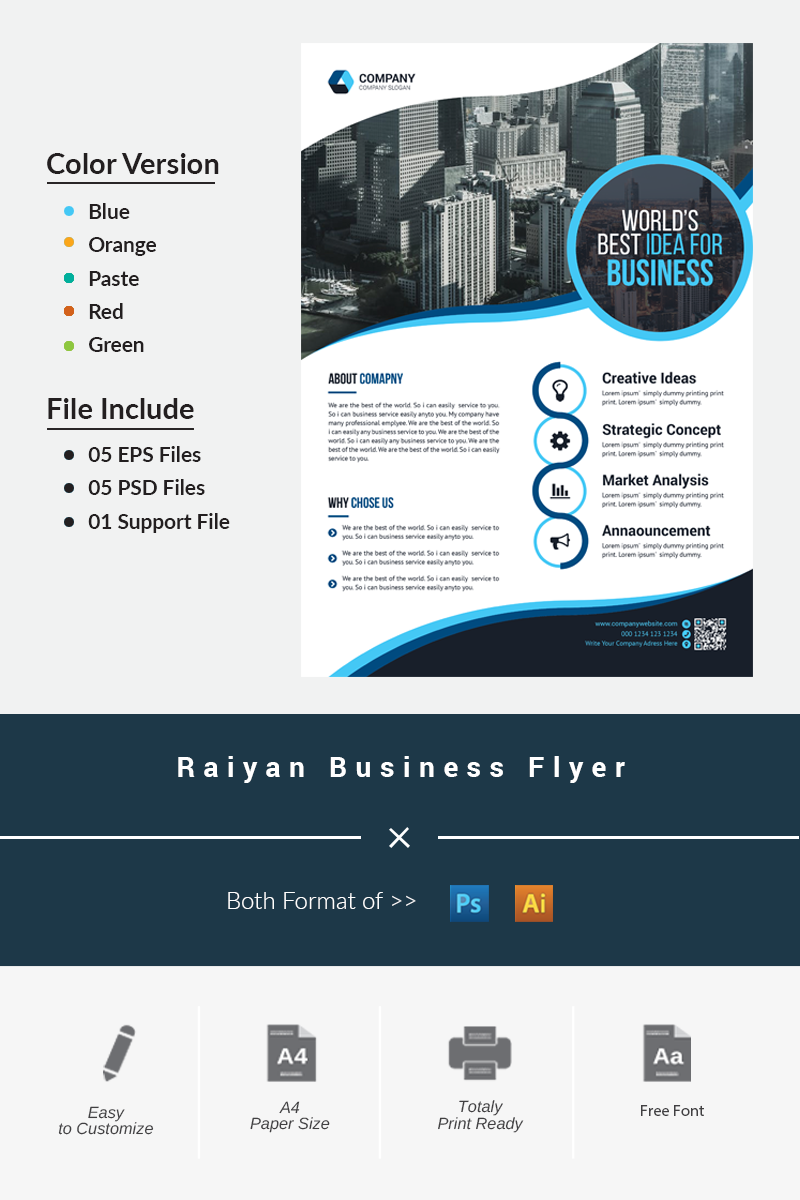 Download Фирменный стиль "Raiyan Business Flyer - Corporate Identity Template" / Raiyan Business Flyer - Corporate Identity Template - Фирменный стиль на тему графика psd flyer corporate liflet computer internet stationery poster id kit blue hi-quality official sample business logo professional modern art standard