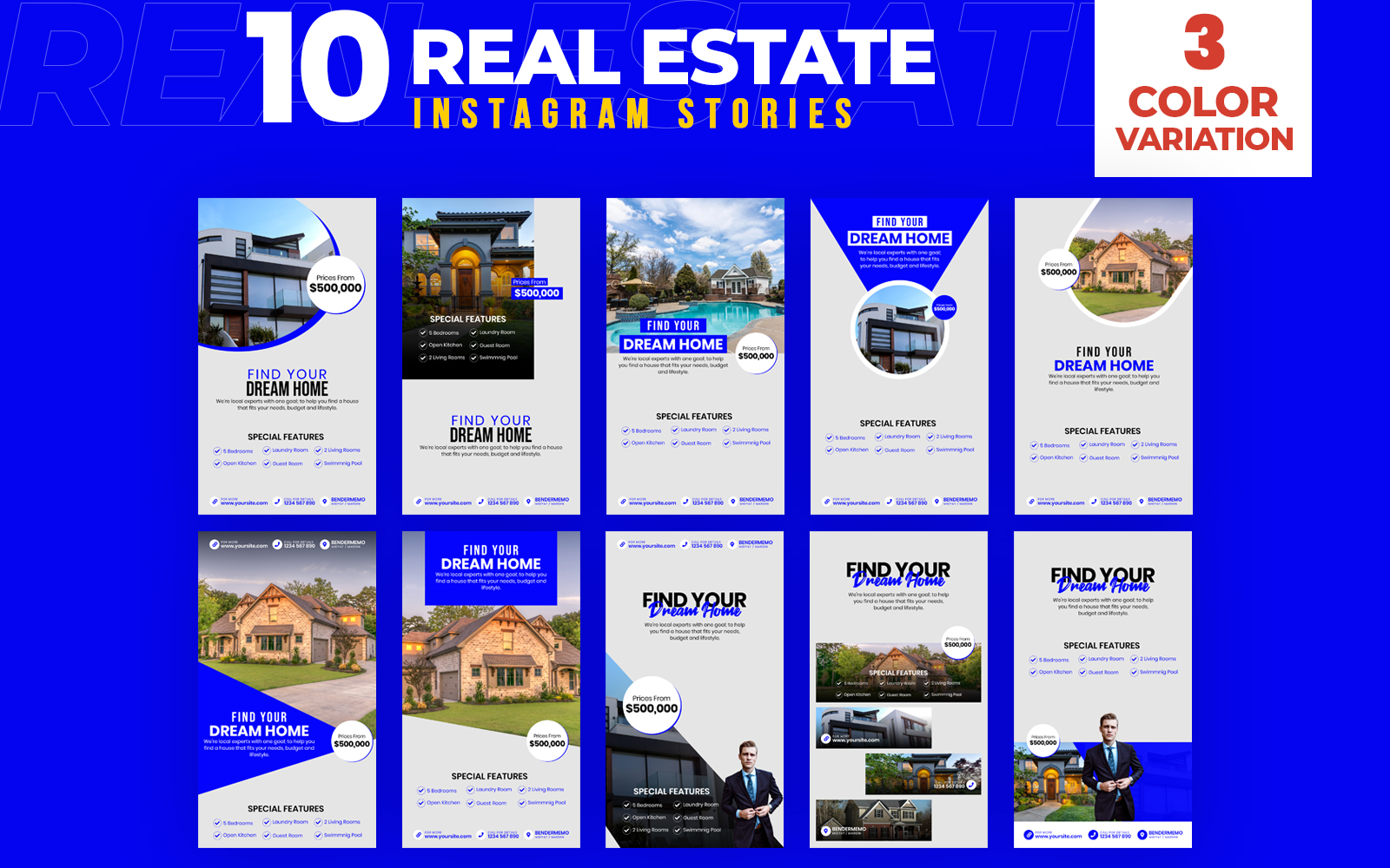 Download Шаблон для соцсетей "Real Estate 10 Instagram Stories Social Media Template" / Real Estate 10 Instagram Stories Social Media Template - Шаблон для соцсетей на тему графика banner,advertising,building,commercial,complex,duplex,facebook,instagram,houses,land,landed,estate,property,mortgage,real,realty,rental,residential,rezidange,sale