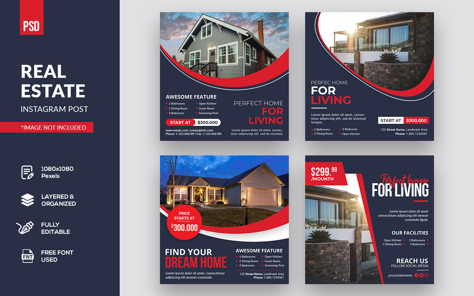 Download Шаблон для соцсетей "Real Estate Instagram Post Social Media Template" / Real Estate Instagram Post Social Media Template - Шаблон для соцсетей на тему графика instagram post,banner,real estate,property,apartment,agency,furniture,landmark,home,house,social media,business,cover,estate,modern,social,dream home,interior,building