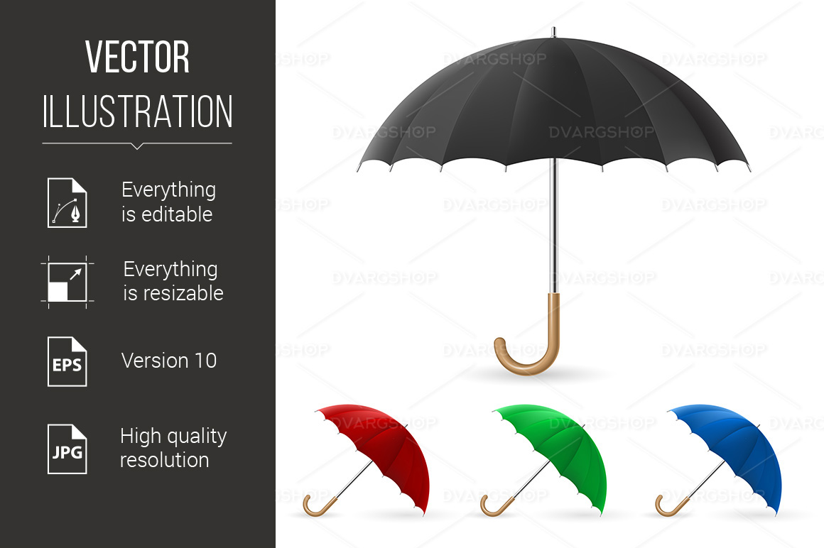 Download Vector "Realistic Umbrella in Four Colors - Vector Image" / Realistic Umbrella in Four Colors - Vector Image - Vector на тему графика colors,four,background,abstract,umbrella,rain,green,black,realistic,blue,big,parasol,business,handle,protective,key,retro,red,fashion