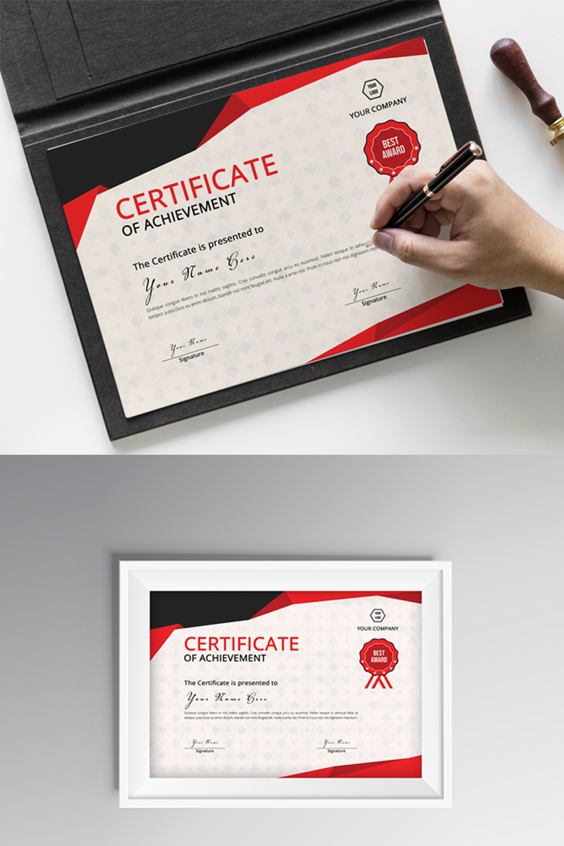 Download Шаблон сертификата "Red&Gray Achievement Certificate Template" / Red&Gray Achievement Certificate Template - Шаблон сертификата на тему графика certificate,achievement,award,school,college,appreciation,print,clean,minimal,psd,geomatric,red,diploma,official