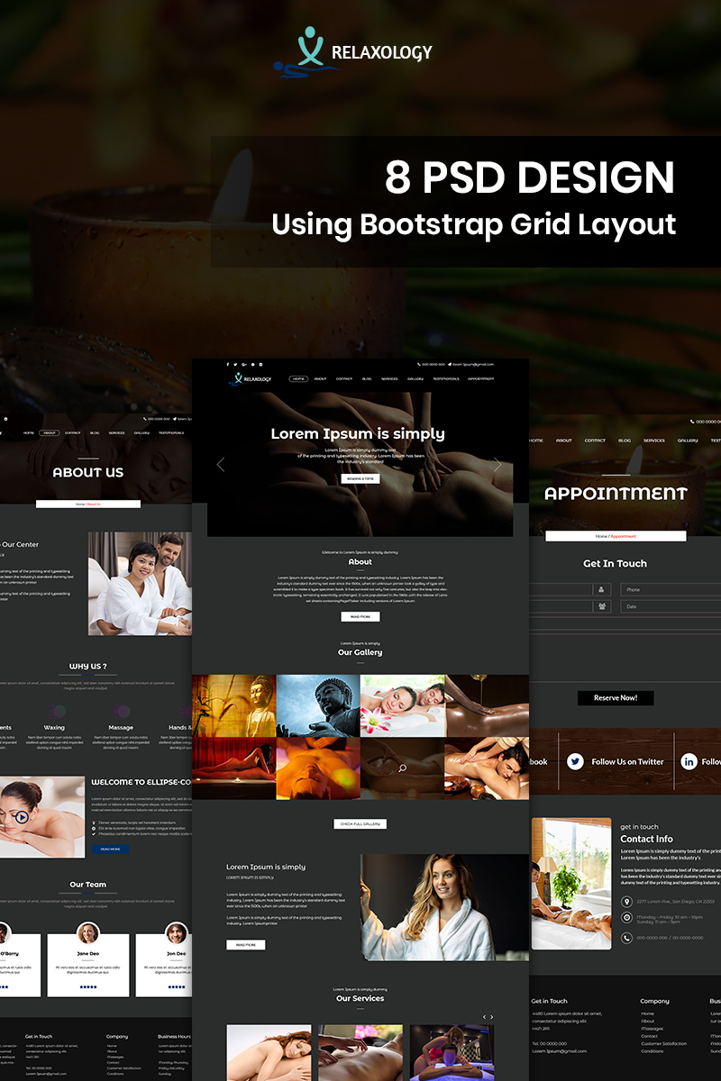 Download PSD шаблон "Relaxology - Message Therapy PSD Template" / Relaxology - Message Therapy PSD Template - PSD шаблон на тему графика message theme template psd photoshop therapy