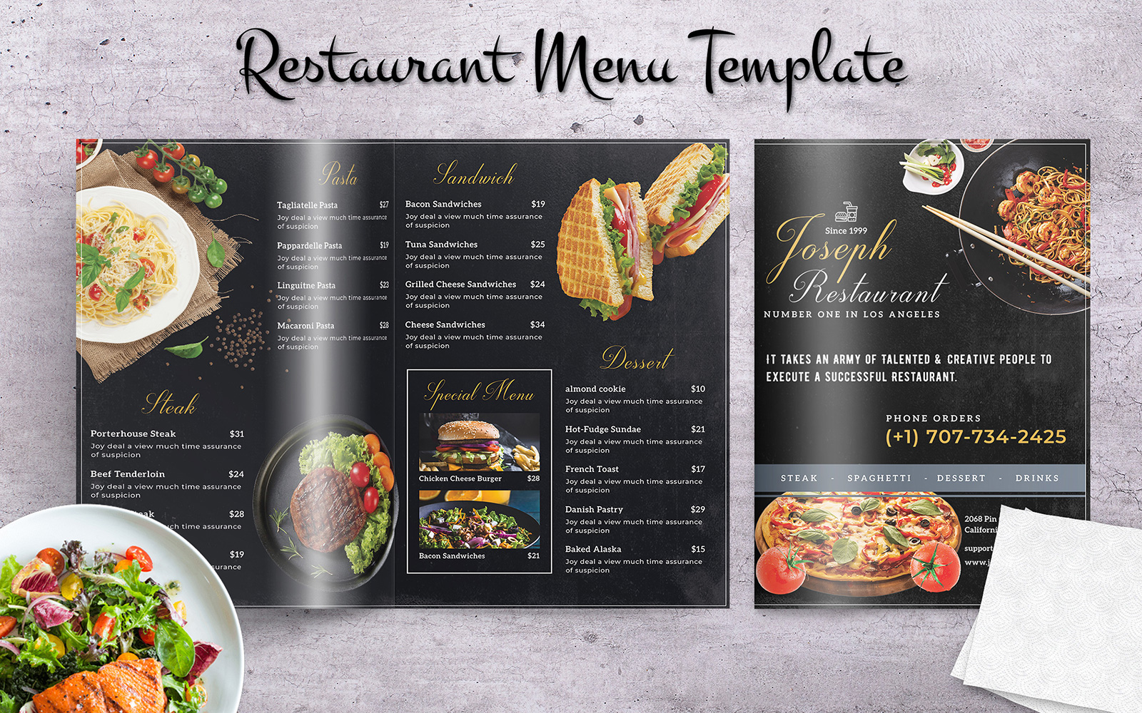 Download Фирменный стиль "Restaurant Food Menu Bifold - Corporate Identity Template" / Restaurant Food Menu Bifold - Corporate Identity Template - Фирменный стиль на тему графика restaurant,hotel,food,menu,order,flyer,brochure,business,trifold,minimal,modern,template,elegant,offers,sale