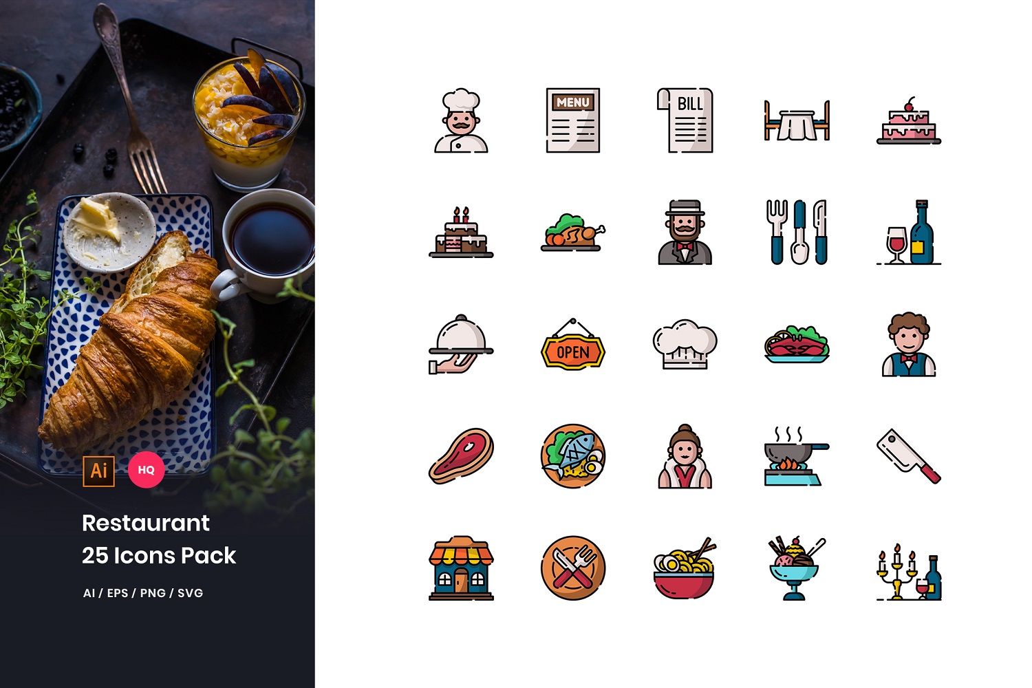 Download Набор иконок "Restaurant Pack Icon Set" / Restaurant Pack Icon Set - Набор иконок на тему графика icons,colorline,outline,restaurant,food,table,dinner,cafe,lunch,drink,business,coffeeshop,cuisine,cooking,dessert