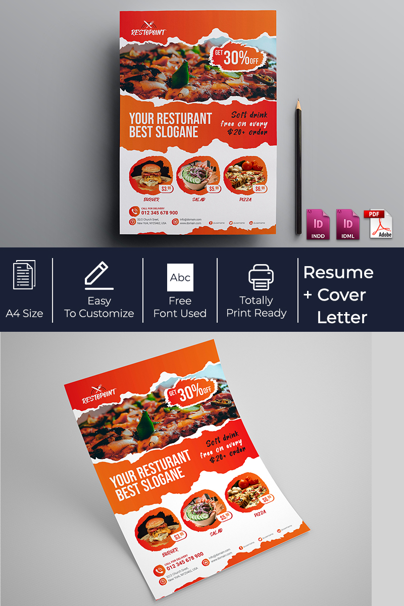 Download Фирменный стиль "Restaurant Promotional Flyer - Corporate Identity Template" / Restaurant Promotional Flyer - Corporate Identity Template - Фирменный стиль на тему графика food restaurant promotional flyer flyers marketing sales offer
