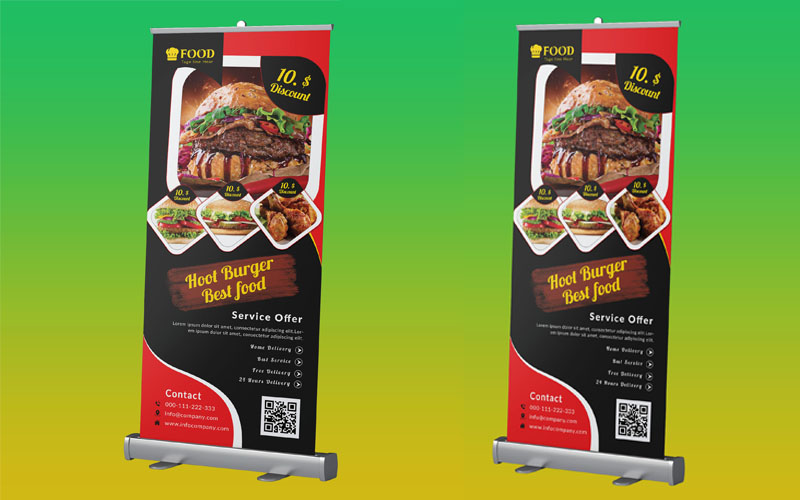 Download Фирменный стиль "Restaurant Roll up Banner - Corporate Identity Template" / Restaurant Roll up Banner - Corporate Identity Template - Фирменный стиль на тему графика ad,advert,banner,banners,bar,burger,cheese,delicious,design,dinner,discount,fire,flame,flyer,food,fries,graphics,grill,hot,lunch