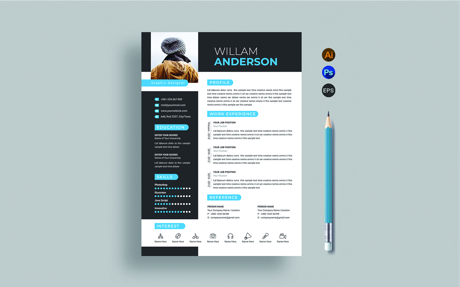 Download Фирменный стиль "Resume / CV - Corporate Identity Template" / Resume / CV - Corporate Identity Template - Фирменный стиль на тему графика black,blue,brand,clean,cmyk,color,company,corporate,creative,design,designer,eps,green,horizontal,modern,personal,print,print ready,resume,resume template