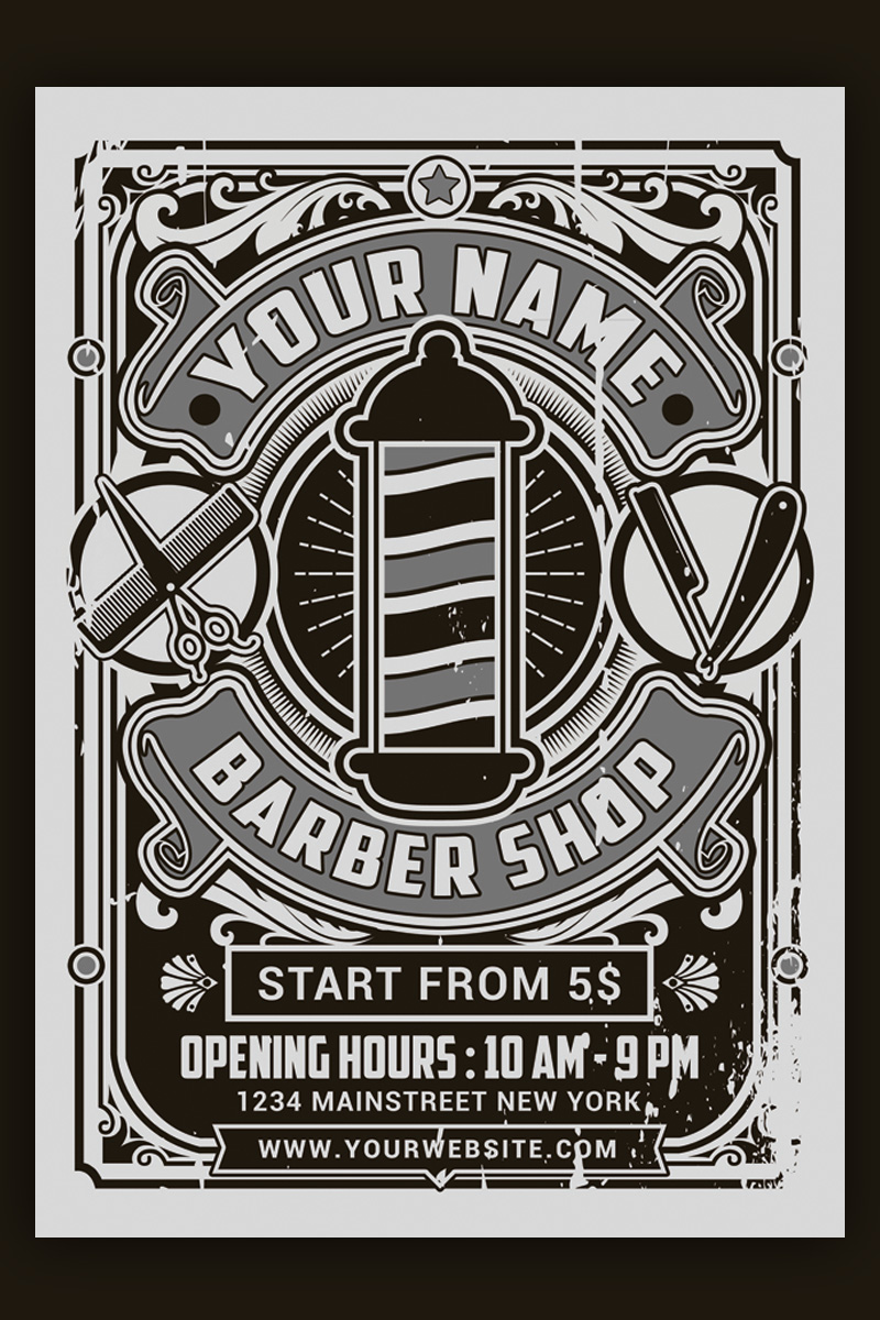 Download Фирменный стиль "Retro Barber Shop Flyer - Corporate Identity Template" / Retro Barber Shop Flyer - Corporate Identity Template - Фирменный стиль на тему графика ad barber flyer shop barbershop beard blue chalkboard creambath cut cuts hair hipster model moustache old print ready red retro