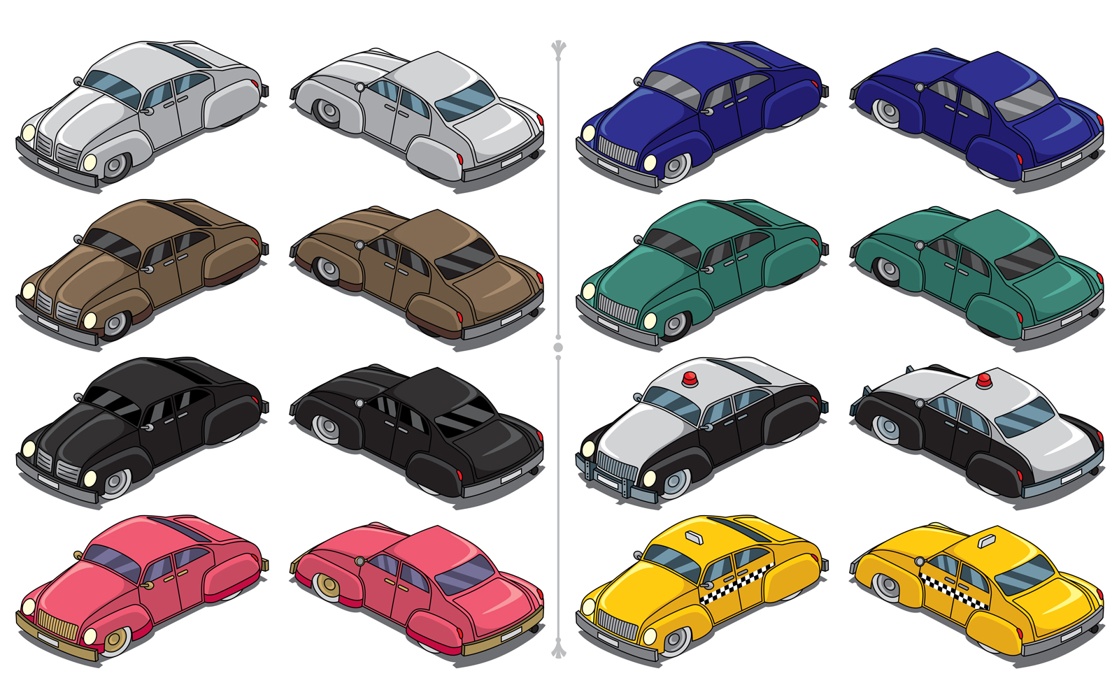 Download Иллюстрация "Retro Cars - Illustration" / Retro Cars - Illustration - Иллюстрация на тему графика car,retro,old,collection,hot rod,muscle,vintage,low rider,whitewall tire,bumper,retro revival,taxi,police,limousine,pimp,green,blue,black,brown,white