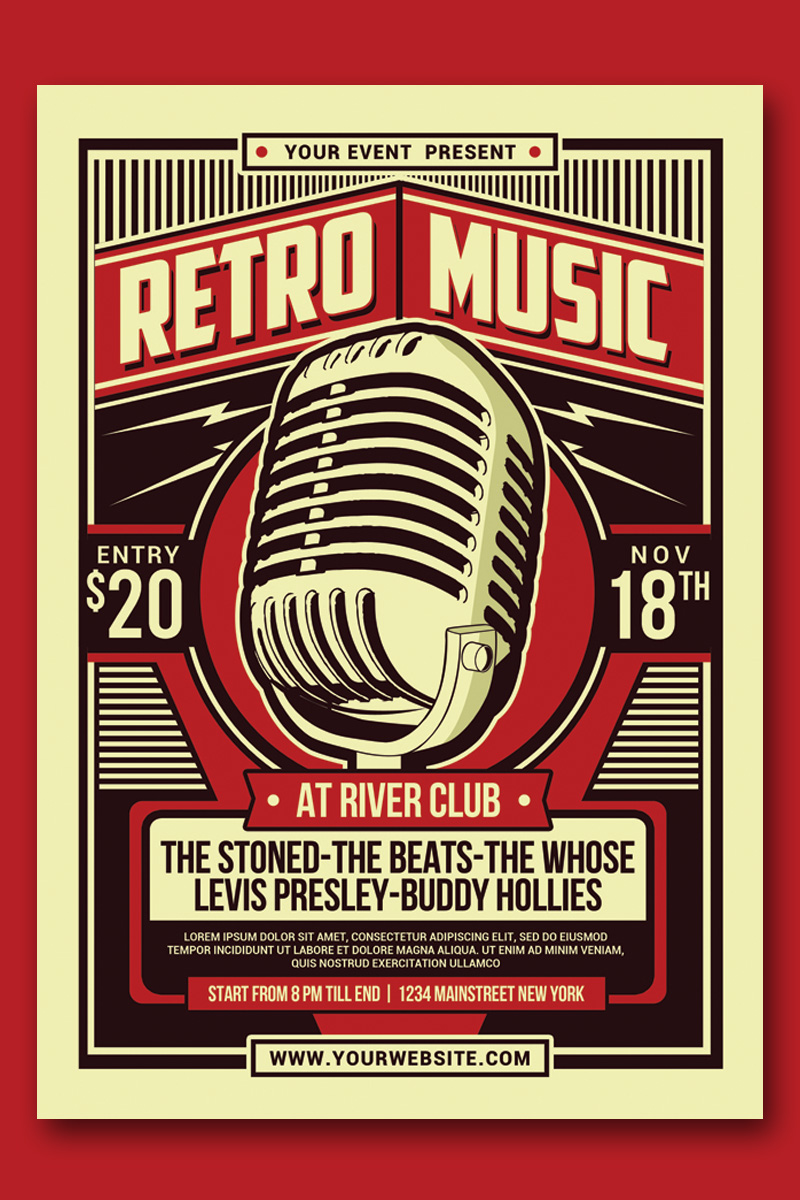 Download Фирменный стиль "Retro Music Party Flyer - Corporate Identity Template" / Retro Music Party Flyer - Corporate Identity Template - Фирменный стиль на тему графика 80's 80s 90's alternative cassette concert disco dj event festival flyer fullcolor funk funky gig guest illustration indie music party