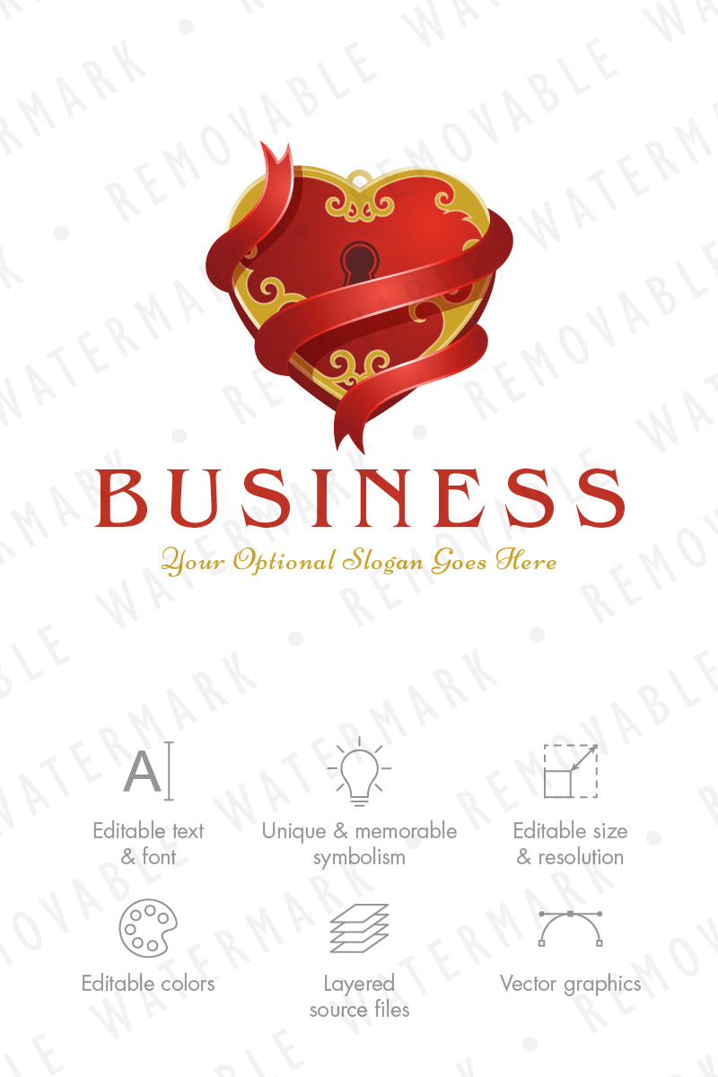 Download Шаблон логотипа "Ribbon & Heart Lock Logo Template" / Ribbon & Heart Lock Logo Template - Шаблон логотипа на тему графика elegant love golden heart lock ribbon decoration dating marriage locked padlock wedding precious treasure gem jewelry gift logo design template