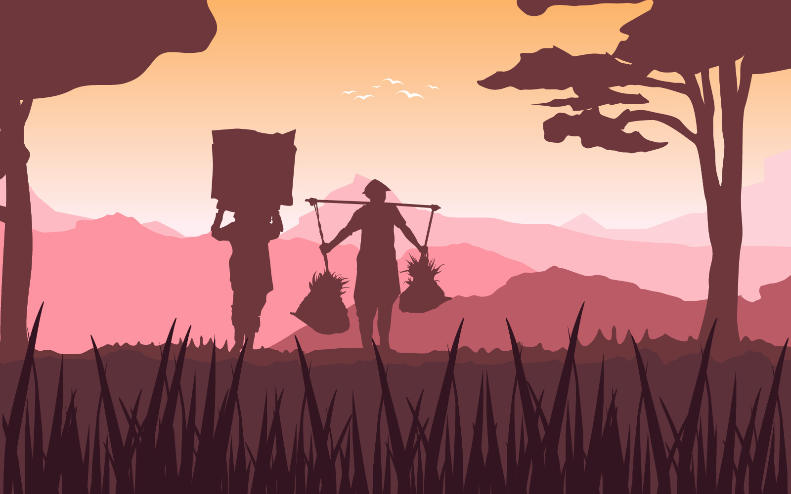 Download Иллюстрация "Rice Field Agriculture - Illustration" / Rice Field Agriculture - Illustration - Иллюстрация на тему графика morning,asian,farmer,rice,field,paddy,plantation,agriculture,illustration,vector,village,landscape,farm,road,background,hills,path,asia,dirt,garden