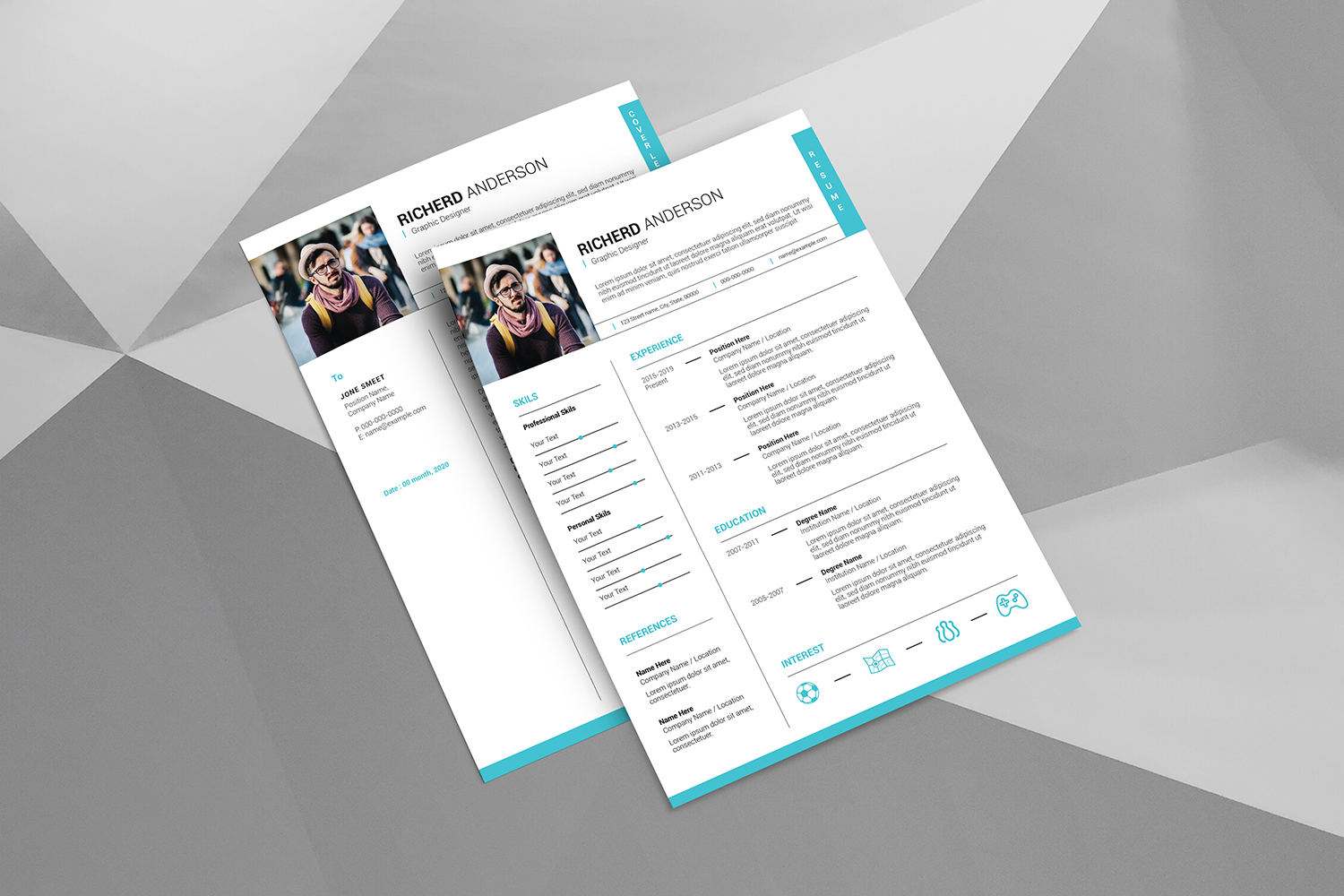 Download Резюме "Richerd Resume Template" / Richerd Resume Template - Резюме на тему графика clean resume,minimal resume,professional,cv,design,word,illustrator,bio data,cover letter