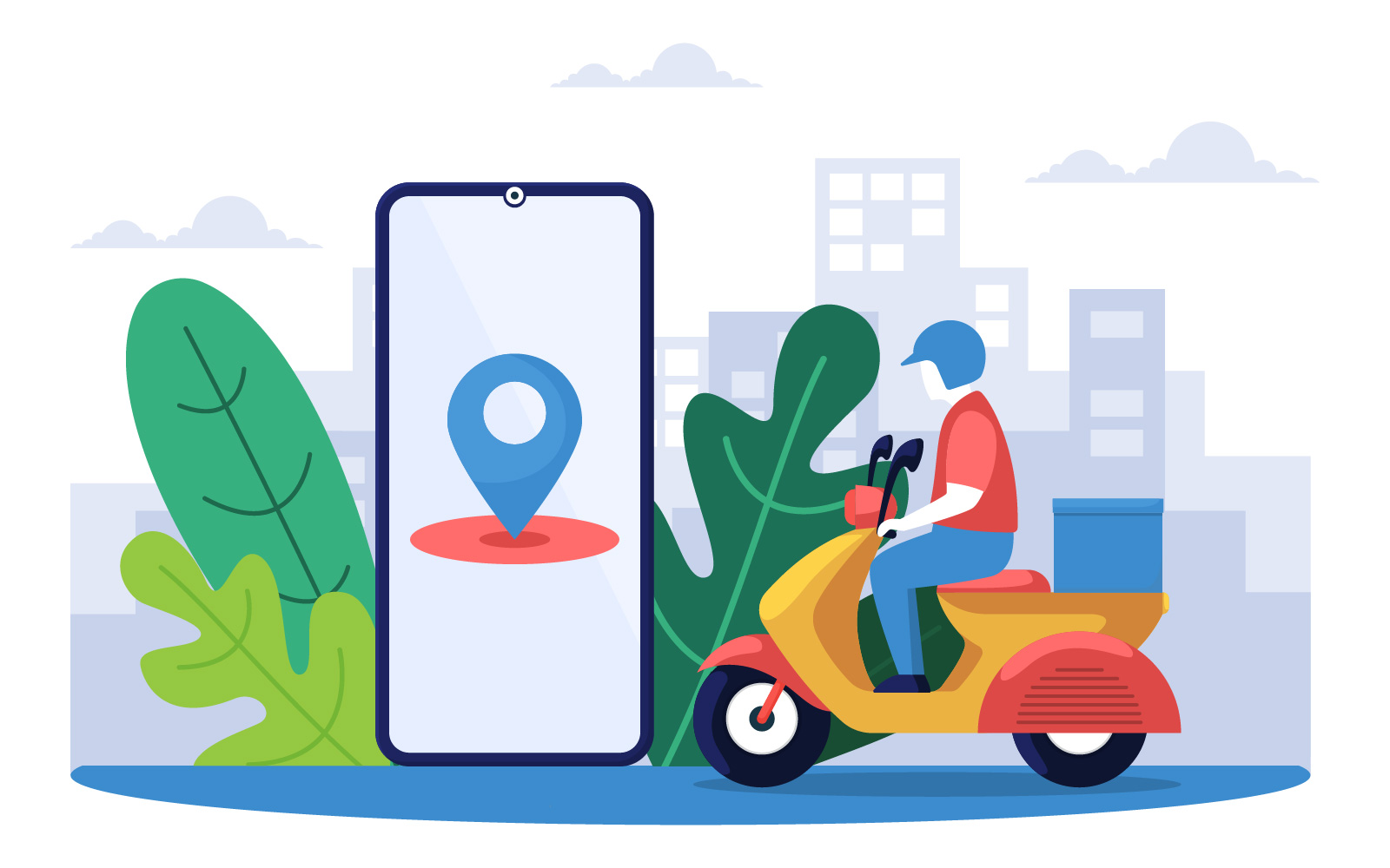 Download Иллюстрация "Riding Delivery Scooter - Illustration" / Riding Delivery Scooter - Illustration - Иллюстрация на тему графика map,riding,scooter,delivery,service,food,shipping,mobile,application,vector,app,online,order,restaurant,city,deliver,moped,fast,quick,gps