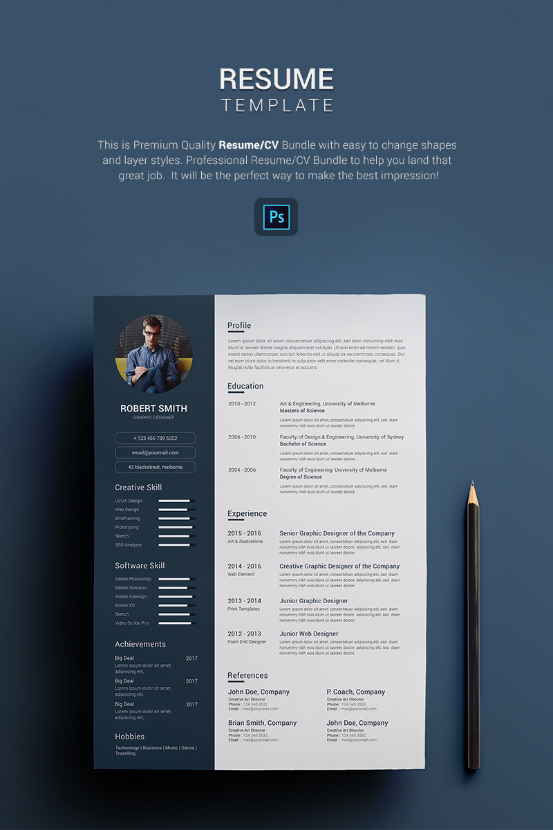 Download Резюме "Robert Smith - Graphic Designer Resume Template" / Robert Smith - Graphic Designer Resume Template - Резюме на тему графика cv resume template printable psd resume theme cv design job download premium cover letter graphic designer professional clean new