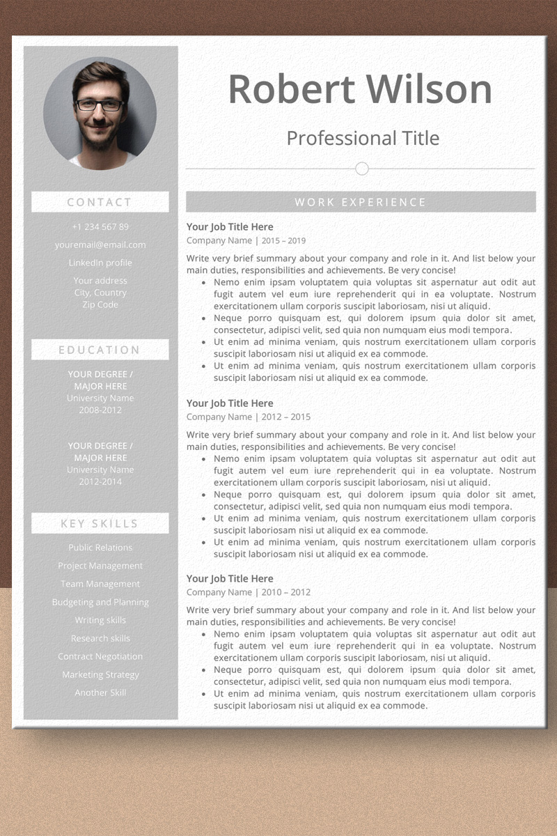 Download Резюме "Robert Wilson Ms Word Resume Template" / Robert Wilson Ms Word Resume Template - Резюме на тему графика professional,resume,template,without,profile,photo,picture,modern,2020,references,gray,it,engineer,european,word,editable,resume template,cv template,cover letter,curriculum vitae