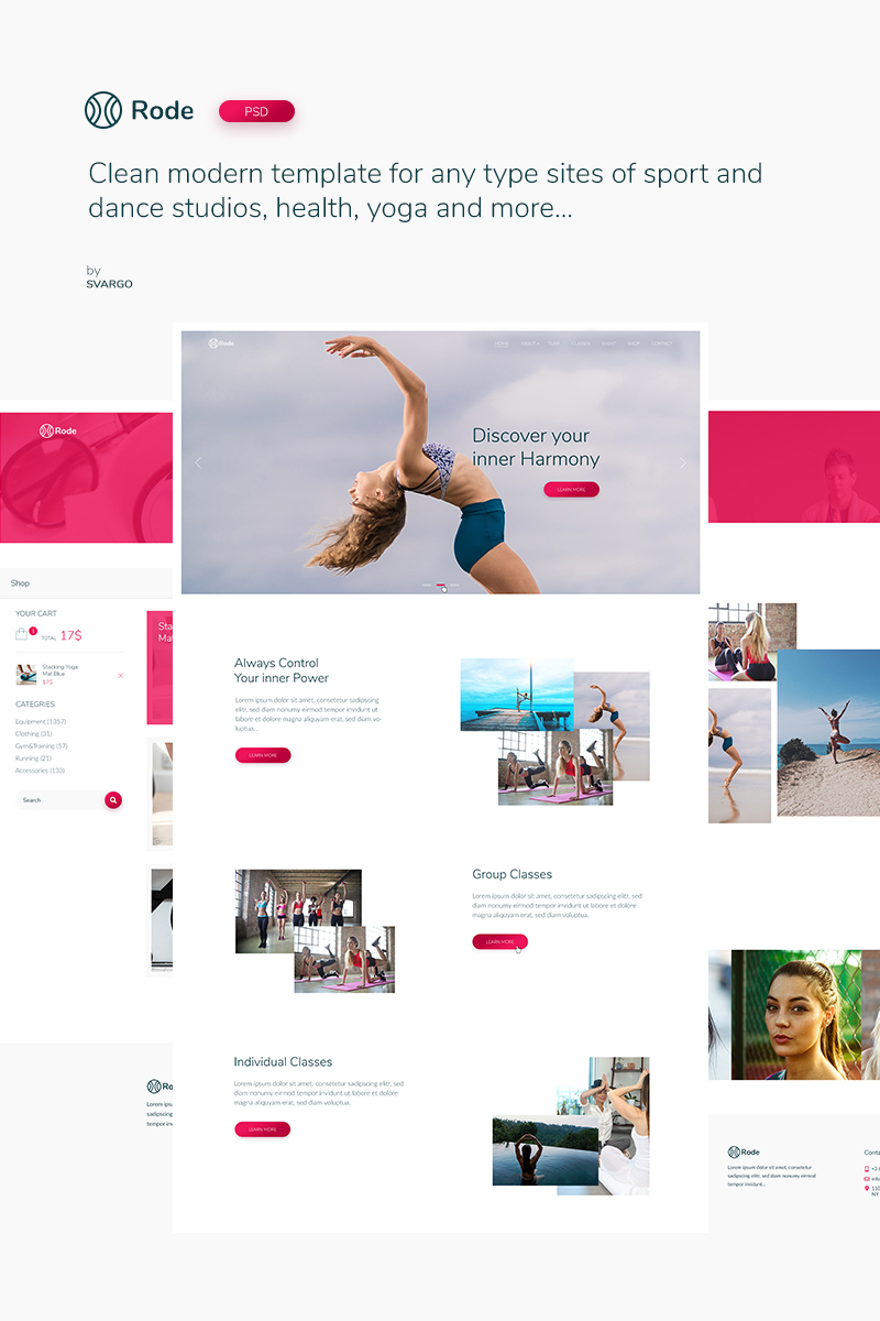Download PSD шаблон "Rode - Sport and Yoga PSD Template" / Rode - Sport and Yoga PSD Template - PSD шаблон на тему йога yoga psd sport template