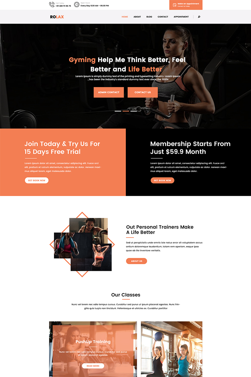 Download PSD шаблон "Rolax - Gym and Fitness PSD Template" / Rolax - Gym and Fitness PSD Template - Адаптивный PSD шаблон на тему фитнес responsive bootstrap gym fitness yoga excerise classes gallery google font contact