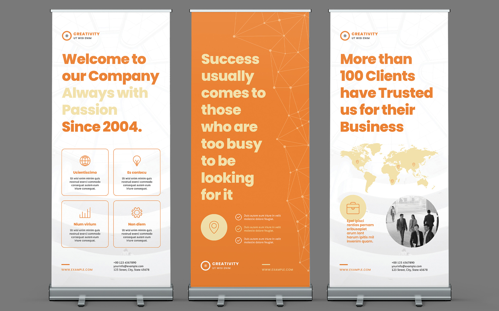 Download Фирменный стиль "Roll-Up Banner Set Creative - Corporate Identity Template" / Roll-Up Banner Set Creative - Corporate Identity Template - Фирменный стиль на тему графика rollup,banner,network,connection,orange,creative,company,marketing,business,multipurpose