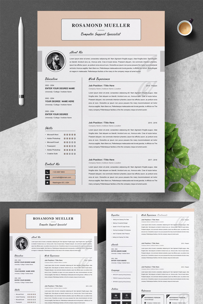 Download Резюме "Rosamond Resume Template" / Rosamond Resume Template - Резюме на тему графика 1 page resume 2 clean cv cover letter design template illustrator eps mac pages microsoft word modern photoshop psd professional