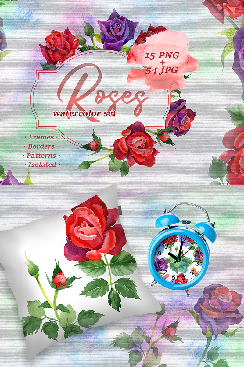 Download Иллюстрация "Roses Watercolor PNG Set - Illustration" / Roses Watercolor PNG Set - Illustration - Иллюстрация на тему графика watercolor illustration delicate drawing background colorful drawn red purple rose paint leaf plant wildflower seasonal foliage flower sprout stem textile
