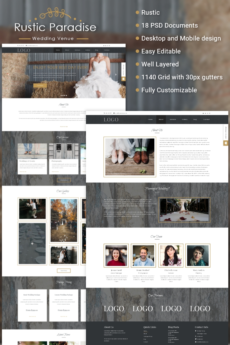 Download PSD шаблон "Rustic Paradise Wedding Venue PSD Template" / Rustic Paradise Wedding Venue PSD Template - PSD шаблон на тему свадебный зал #rustic #country #wedding #venue #psd #template