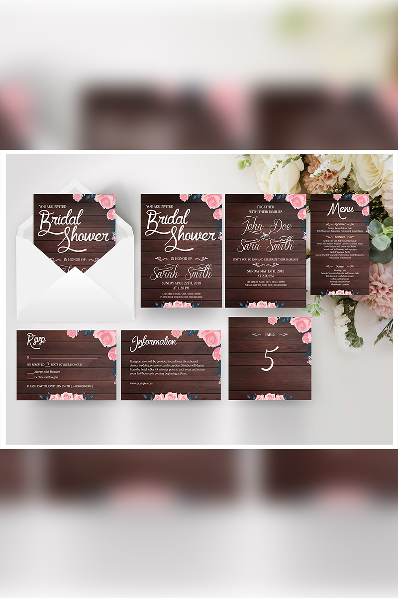 Download Фирменный стиль "Rustic Wooden Wedding Suite - Corporate Identity Template" / Rustic Wooden Wedding Suite - Corporate Identity Template - Фирменный стиль на тему графика creative docx information card menu microsoft word minimal minimalist ms psd template rsvp rustic save the date set shower invitation