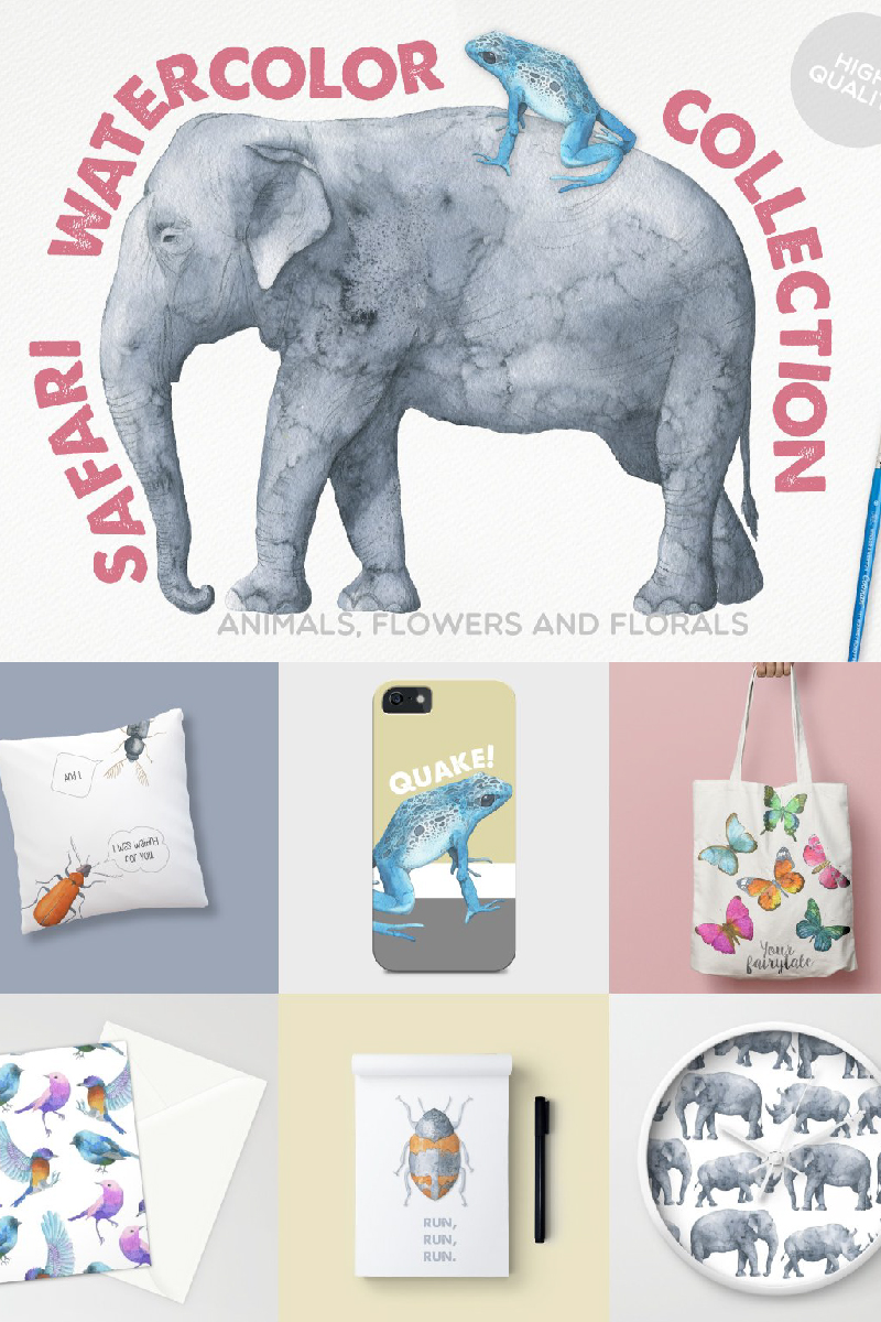 Download Иллюстрация "Safari Watercolor Collection - Illustration" / Safari Watercolor Collection - Illustration - Иллюстрация на тему графика safari elephant leo bird animals branding social media botanical fashion abstract retro vintage stories wreath winter autumn geometric book cover