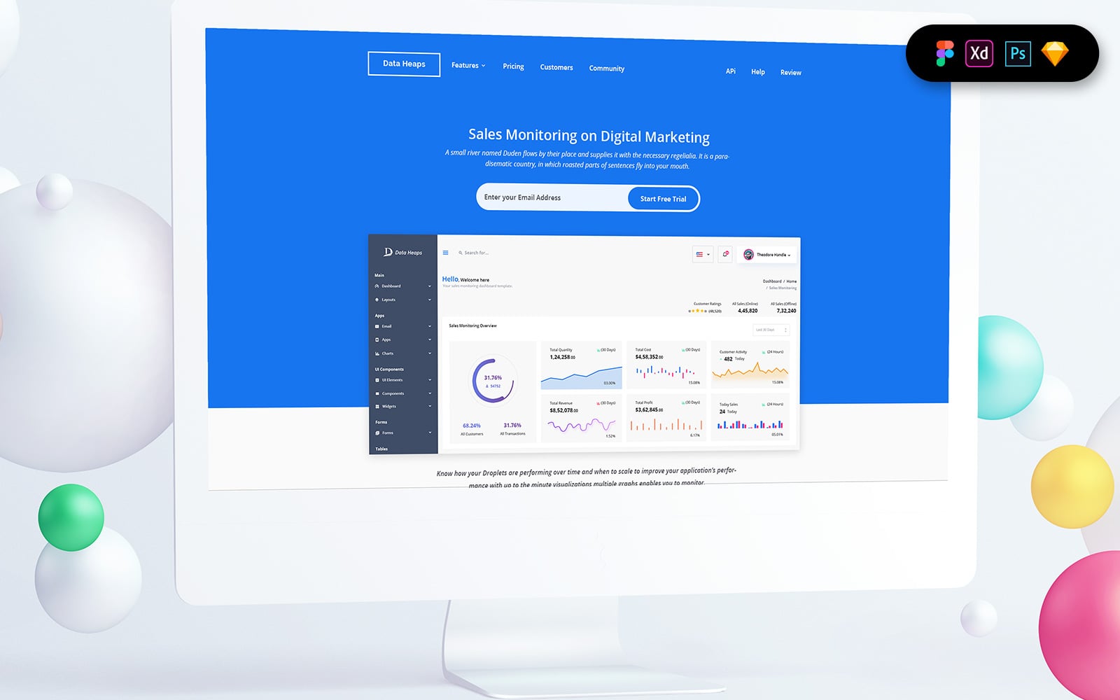 Download PSD шаблон "Sales Monitoring Landing Page PSD Template" / Sales Monitoring Landing Page PSD Template - PSD шаблон на тему графика landingpage,landing,page,promotional,psdtemplate,uidesign,heroheader,website,modern,websales,dashboard,analytics,salesmonitor,saas