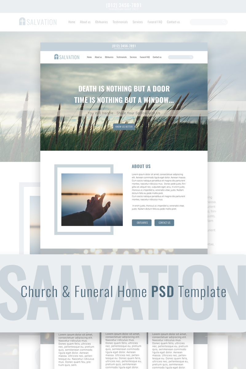 Download PSD шаблон "Salvation - Church & Funeral Home Landing Page PSD Template" / Salvation - Church & Funeral Home Landing Page PSD Template - PSD шаблон на тему христианство church funeral grave sorrow funeral home grief spiritual priest christian catholic temple community