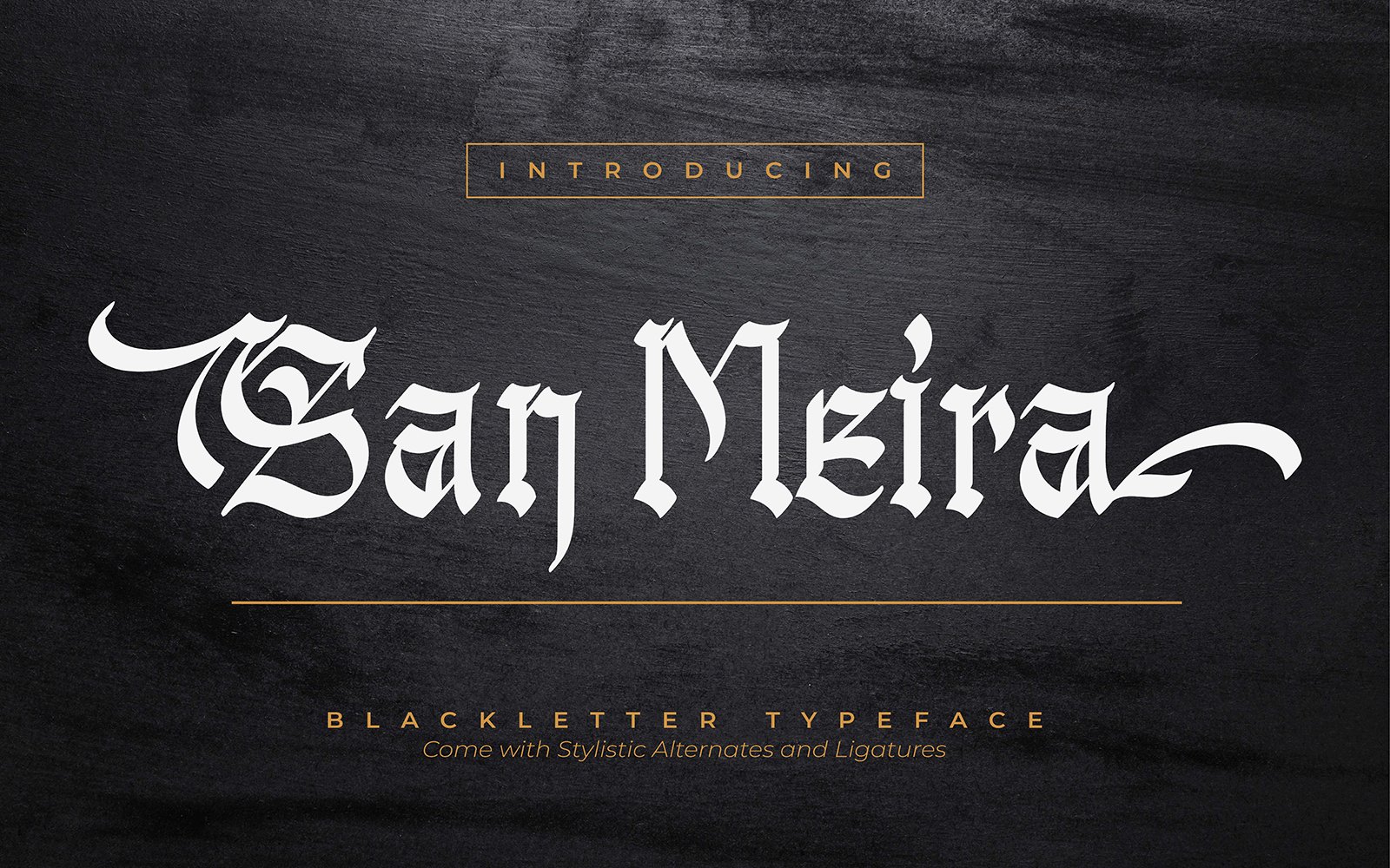 Download Шрифт "San Meira | Blackletter Typeface Font" / San Meira | Blackletter Typeface Font - Шрифт на тему графика vector,vintage,font,letter,type,old,design,typography,calligraphy,alphabet,blackletter,retro,gothic,typeface,graphic,black,text,illustration,lettering,script