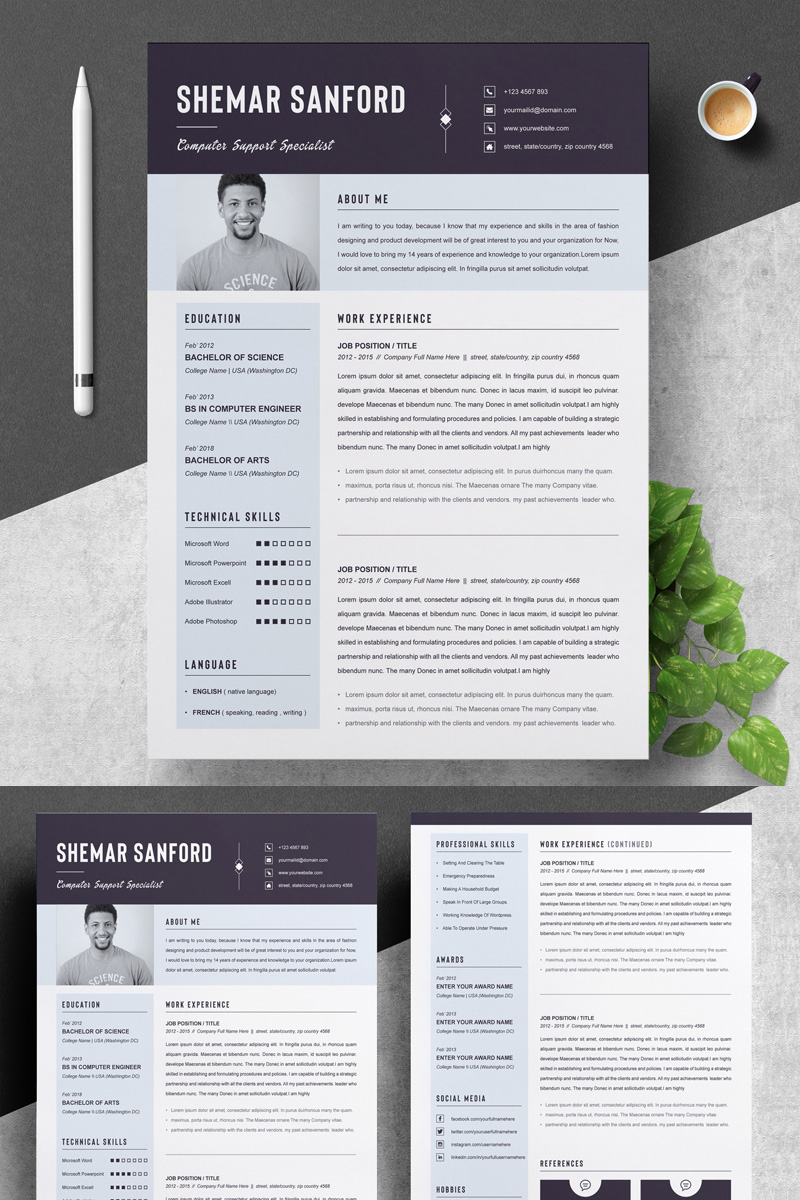 Download Резюме "Sanford Word Cv Resume Template" / Sanford Word Cv Resume Template - Резюме на тему графика 1 page resume 2 clean cv cover letter design template illustrator eps mac pages microsoft word modern photoshop psd professional