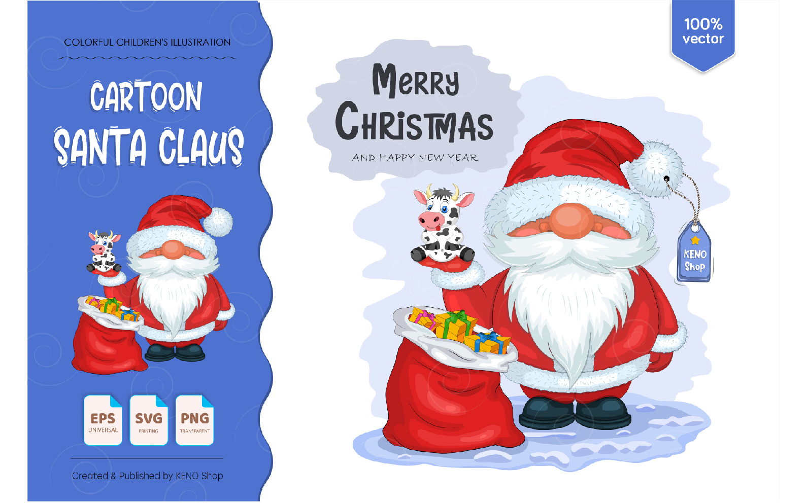 Download Vector "Santa Claus with a Bull - Vector Image" / Santa Claus with a Bull - Vector Image - Vector на тему графика santa claus,gnome,christmas,element,illustration,cartoon,elf,character,scandinavian,white,winter,green,fantasy,comic,holiday,beard,funny,graphic,isolated,seasonal