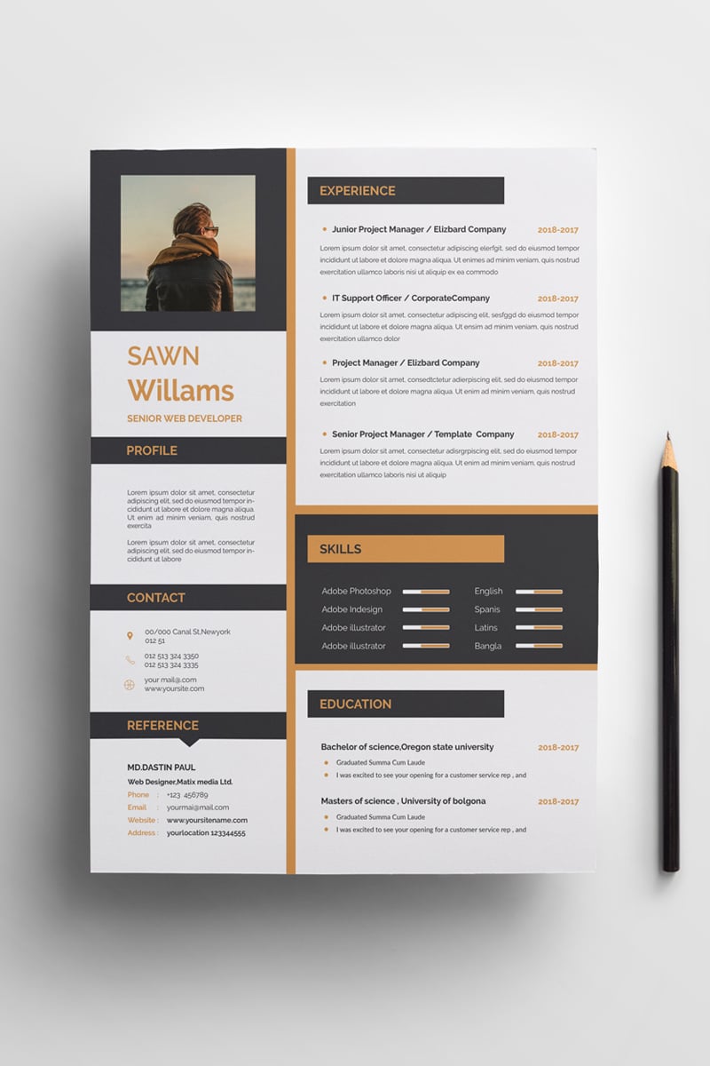 Download Резюме "Sawn Williams Resume Template" / Sawn Williams Resume Template - Резюме на тему графика resume cv printable vector editable free-fonts psd ai pdf bonous professional clean coustomizable a4 print-ready 300dpi cover letter eps engineer