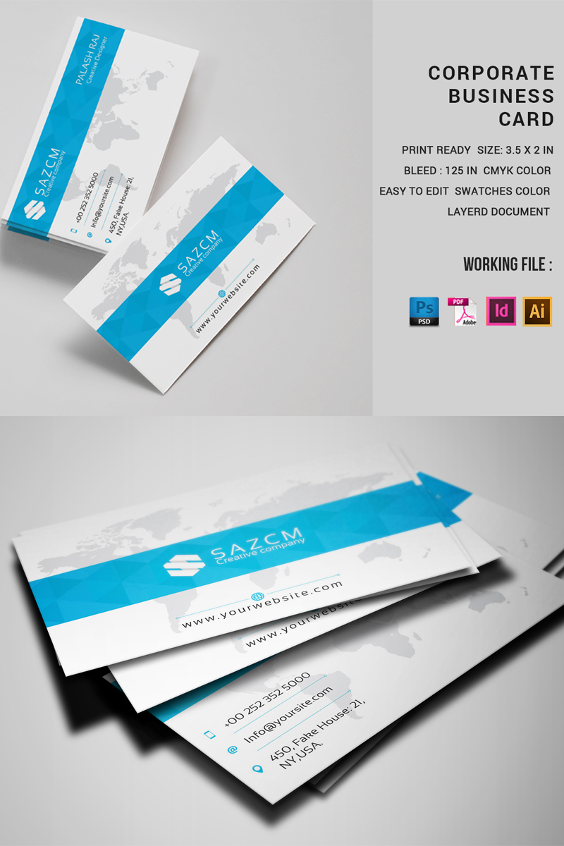 Download Фирменный стиль "SAZCM Corporate Business Card - Corporate Identity Template" / SAZCM Corporate Business Card - Corporate Identity Template - Фирменный стиль на тему графика business card corporate ai indd psd official creative blue modern professional visiting clean minimal template job offiial personal