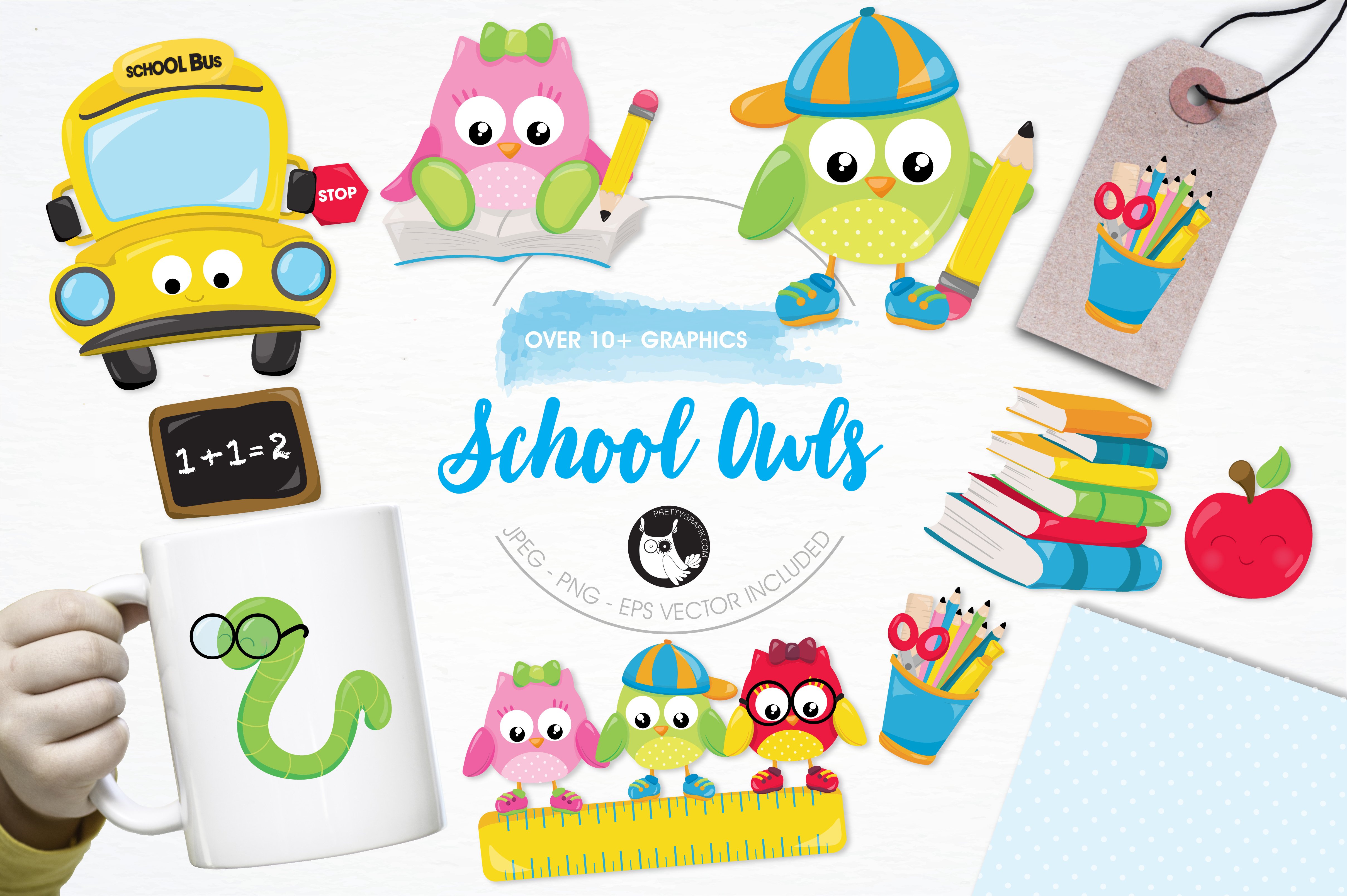 Download Vector "School owls illustration pack - Vector Image" / School owls illustration pack - Vector Image - Vector на тему графика illustration,vector,graphics,clipart,clip art,school,apple,icons,books,owl,chalkboard,bus,eps,ruler,prettygrafik,pencils,bookworm