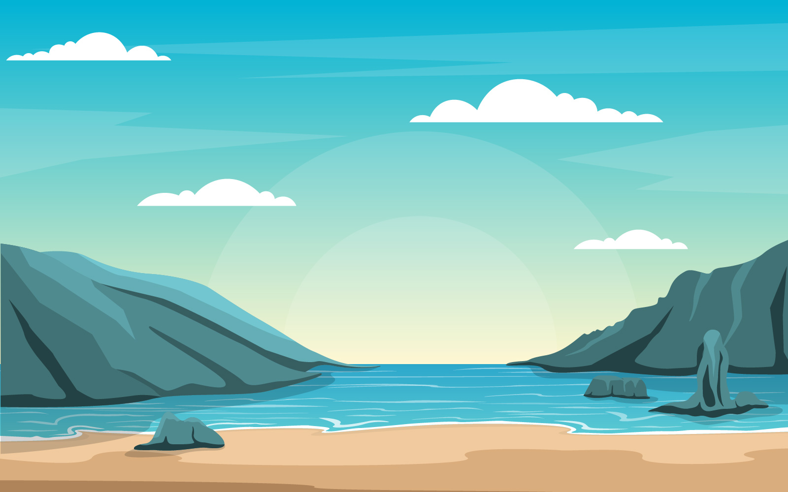 Download Иллюстрация "Sea Panorama Beach Coast Bay Ocean - Illustration" / Sea Panorama Beach Coast Bay Ocean - Illustration - Иллюстрация на тему графика beautiful,sea,panorama,beach,coast,bay,ocean,landscape,illustration,vector,design,poster,background,vacation,tour,travel,rock,scenery,cartoon,rocky