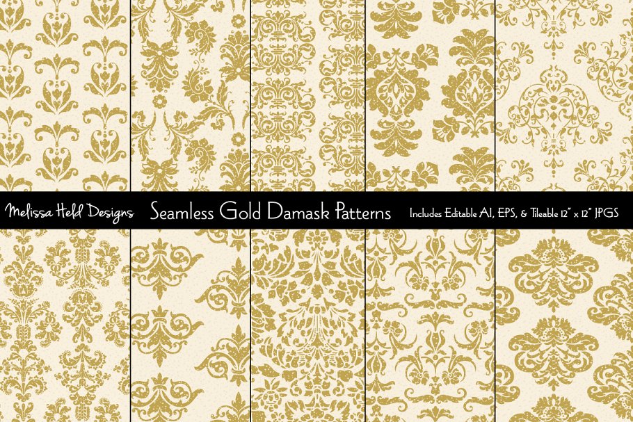 Download Pattern "Seamless Gold Damask Pattern" / Seamless Gold Damask Pattern - Pattern на тему графика vector,pattern,printable,fabric,textile,design,background,backdrop,seamless,repeat,tileable,wallpaper,abstract,brocade,damask,antique,upholstery,gold,yellow,texture