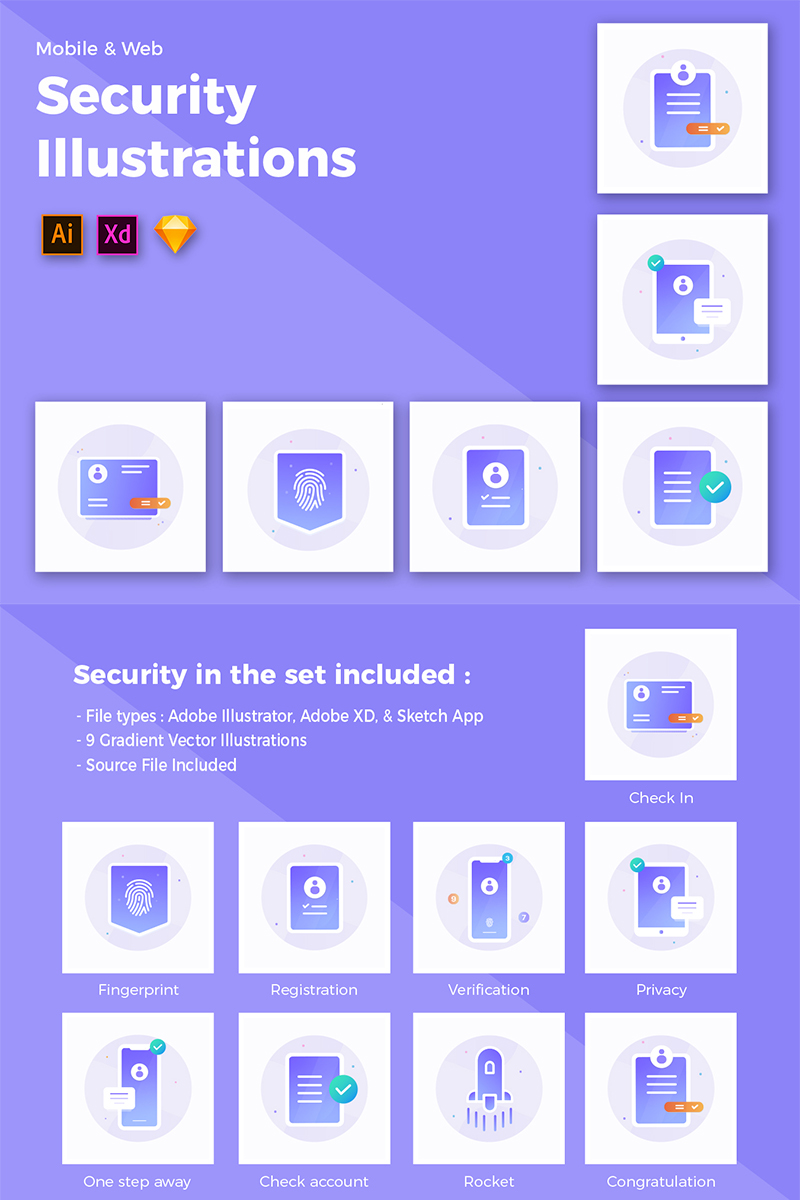 Download Набор иконок "Security Illustration Icon Set" / Security Illustration Icon Set - Набор иконок на тему графика security illustrations gradient ui design ux mobile web bundle icon illustration