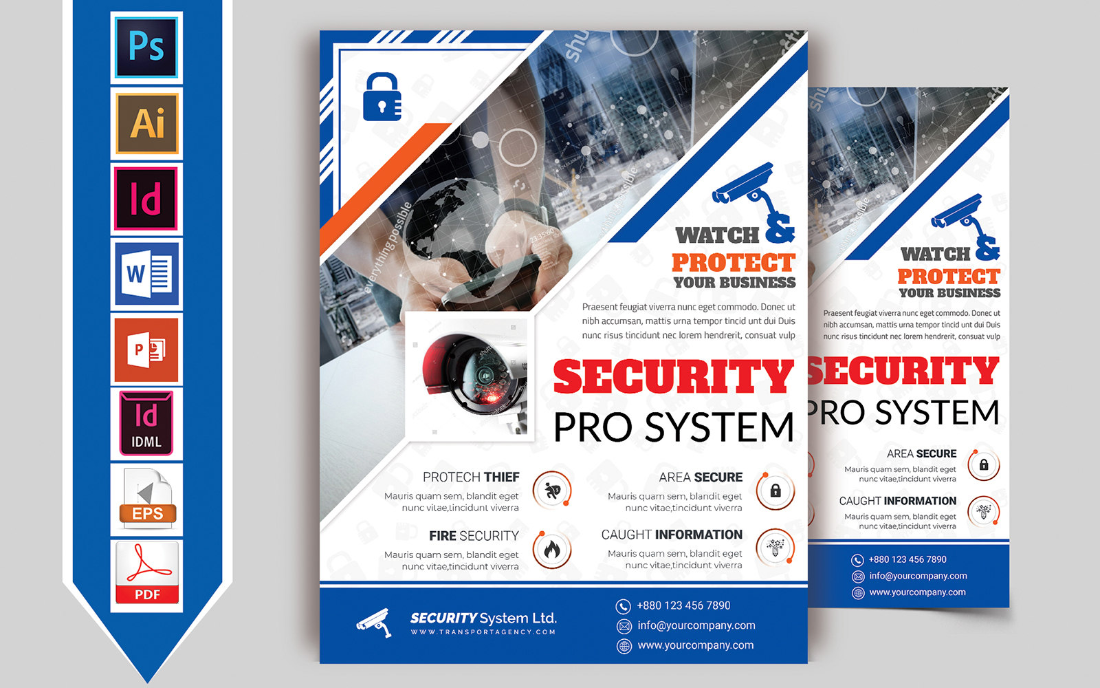 Download Фирменный стиль "Security System Flyer Vol-01 - Corporate Identity Template" / Security System Flyer Vol-01 - Corporate Identity Template - Фирменный стиль security,system,flyer,poster,brochure,psd,ai,vector,eps,cc-camera,cc,security-system,lock,catch,footage,online